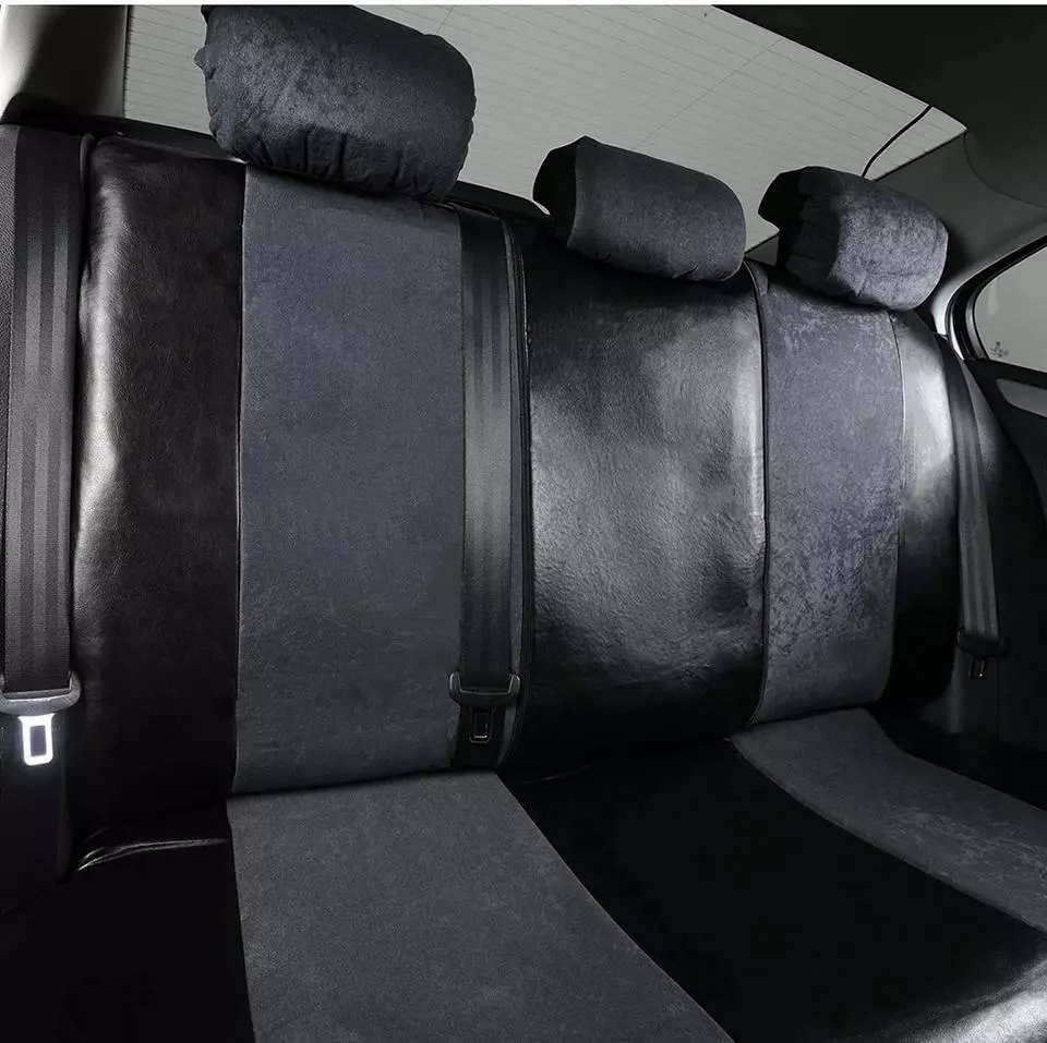 - Mit Klettverschluss für die Kopfstützen und Reißverschluss für die Rücksitzbank