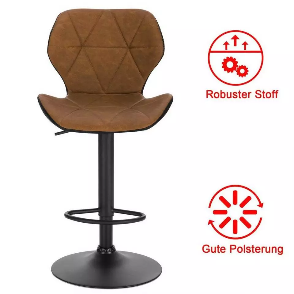 - Der Barhocker ist durch einen Einstellgriff höhenverstellbar und 360°drehbar, damit Sie den Hocker beliebig verstellen, bis Sie zufrieden sind.