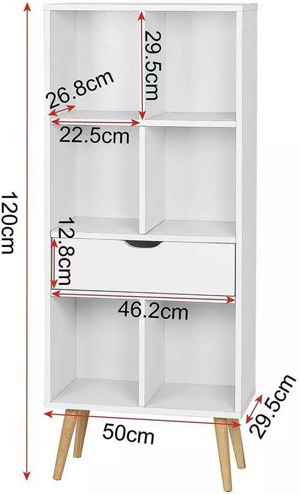 EUGAD Bücherregal, Bücherschrank Raumteiler mit Schublade, mit Fußbeine, 6 Fächer, Weiß