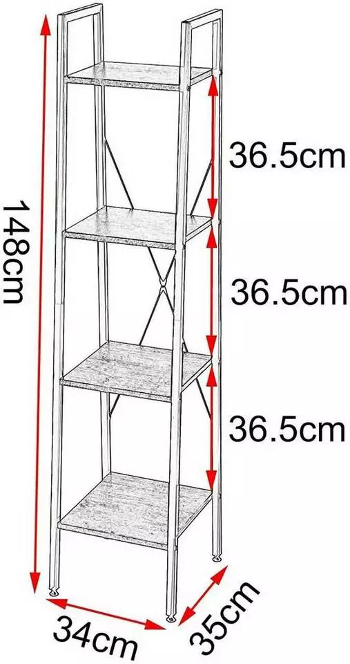 - Bücherregal, Leiterregal mit 4 Ebenen