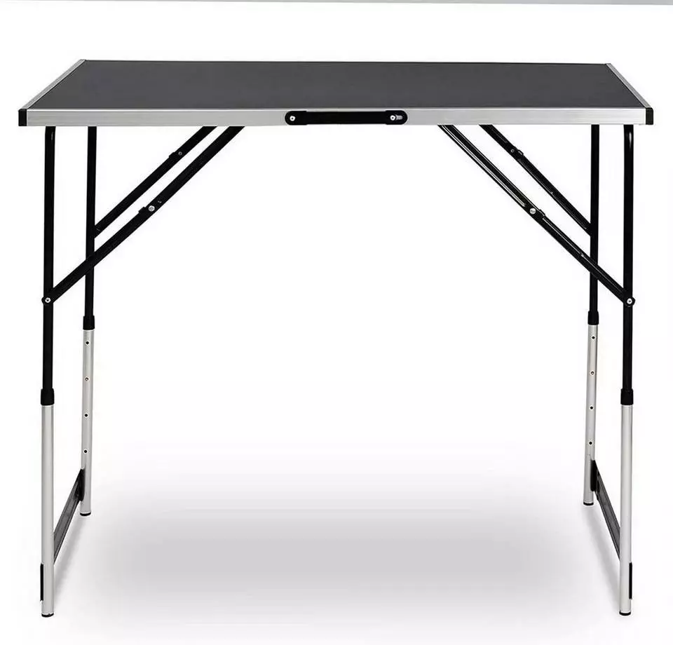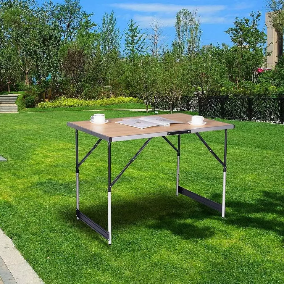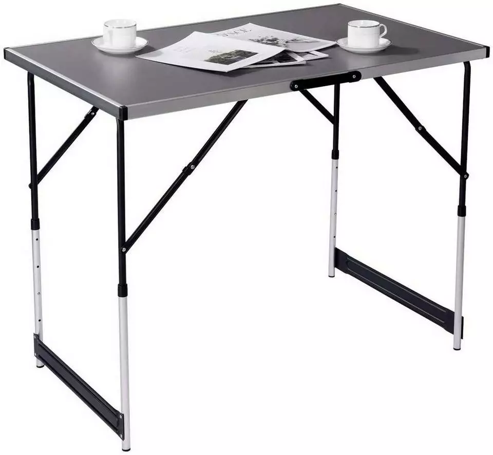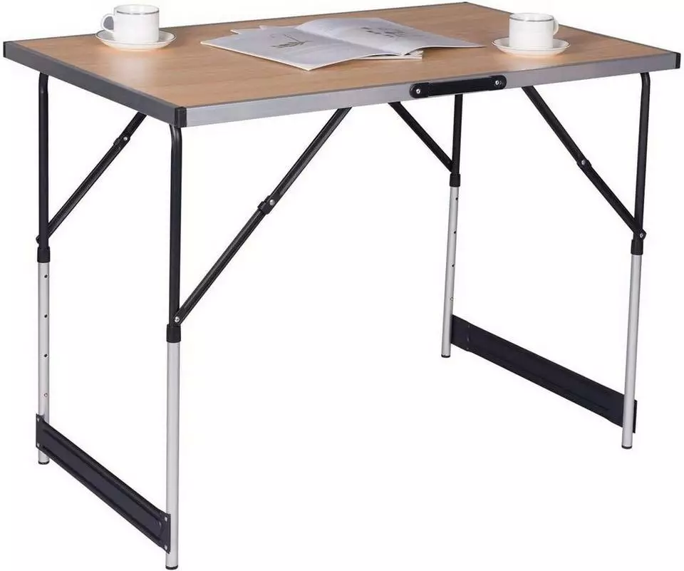 EUGAD Campingtisch, Campingtisch Alu Klapptisch, Tischplatte aus MDF, Schwarz Eiche, Grau