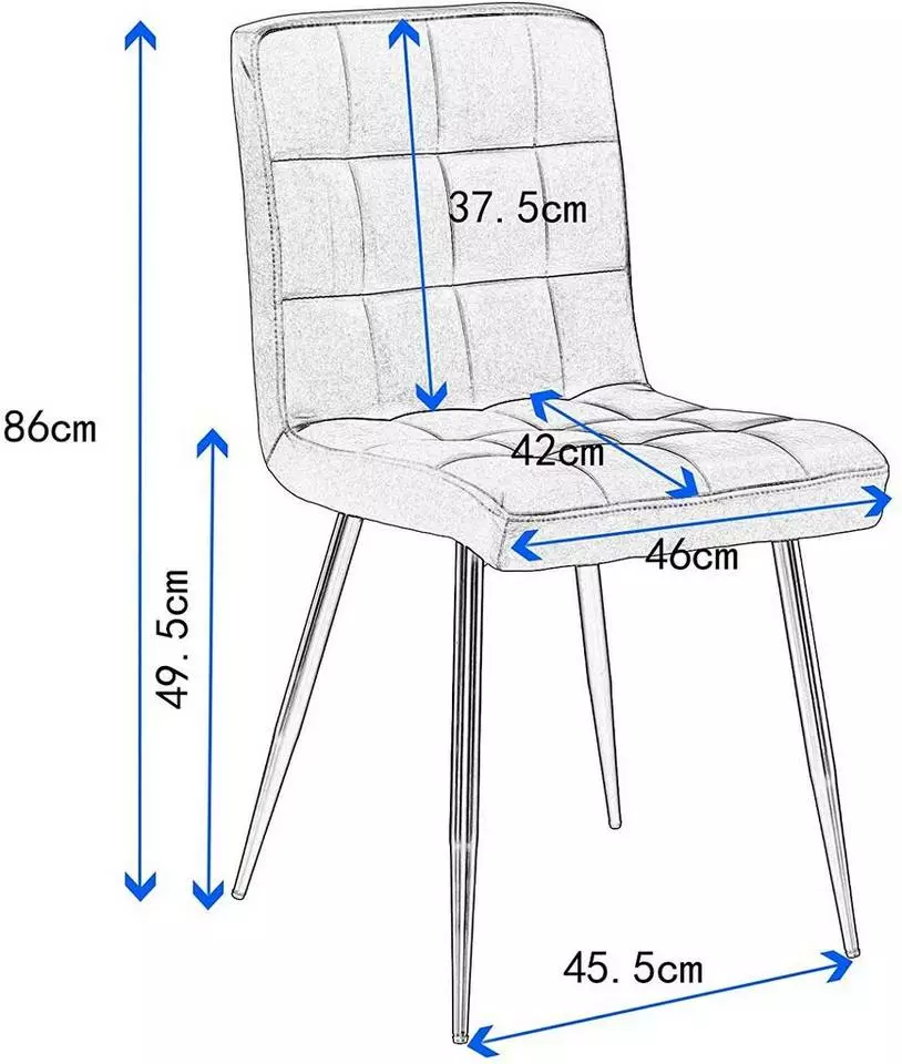 - Größe: Die Größe der Sitzfläche des Küchenstuhls beträgt 46x42cm, die Höhe der Rückenlehne beträgt 37,5cm und die Belastbarkeit ist ca.130 kg.