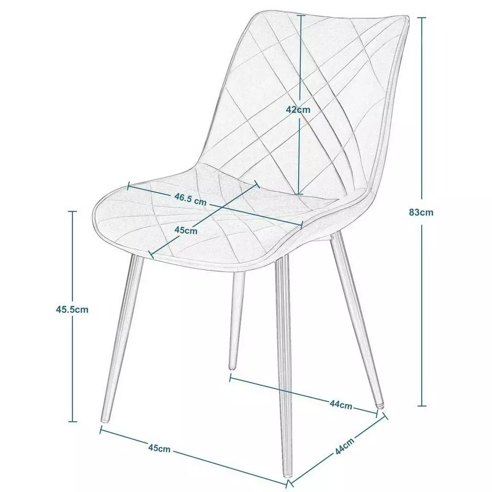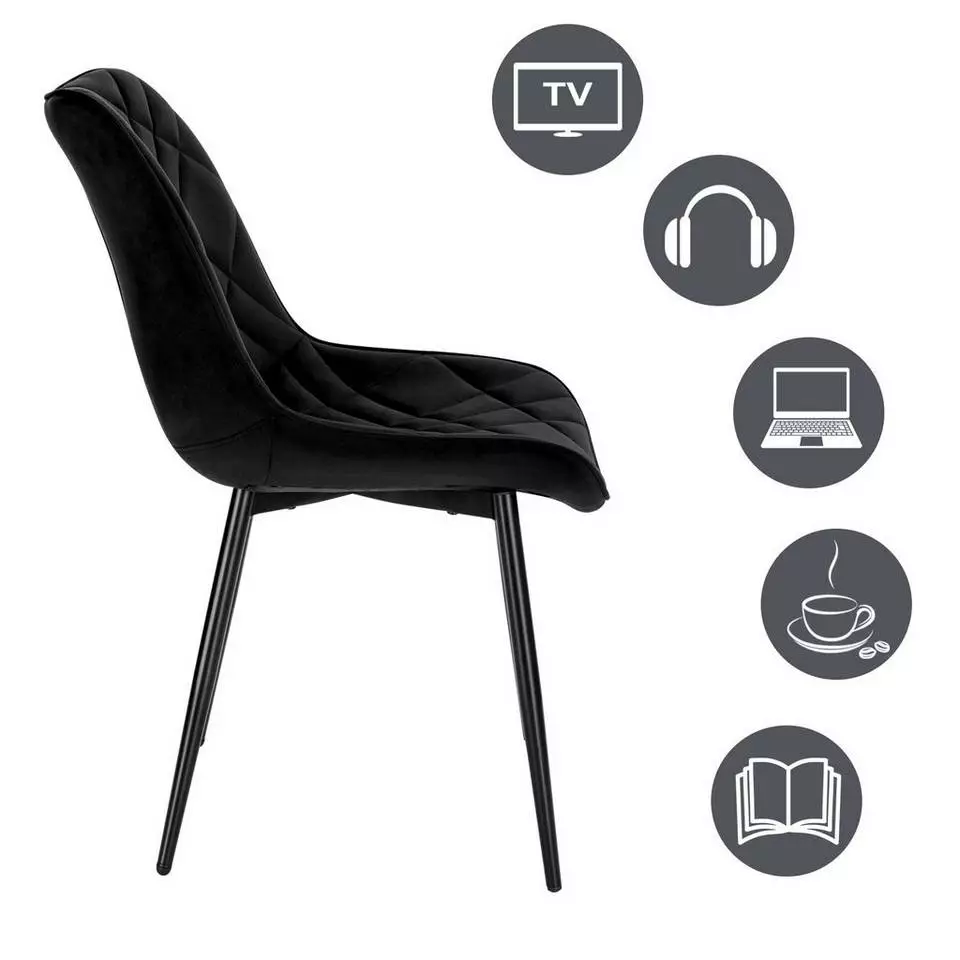 - Das Gestell des Esszimmerstuhls ist aus robustem und langlebigem Metall gefertigt. Die 4 robusten lackierten Metallbeine sind rostfrei und langlebig.