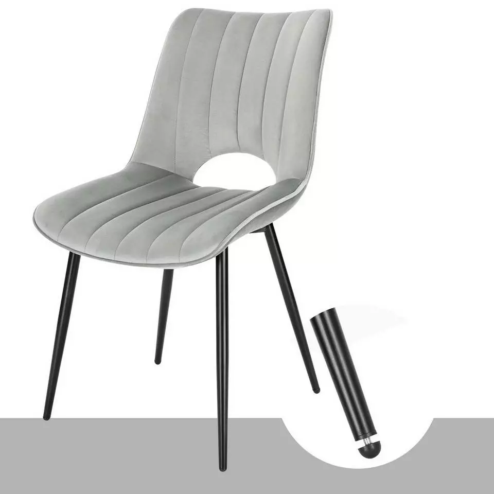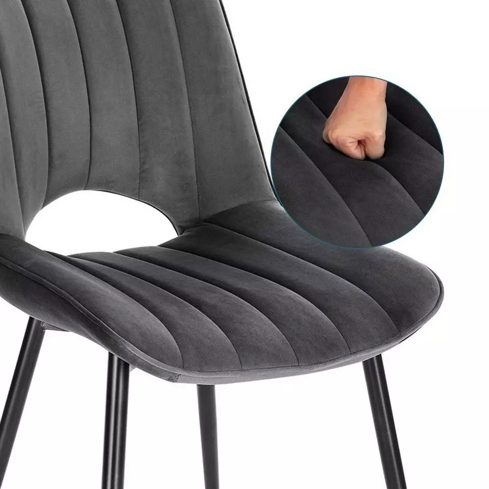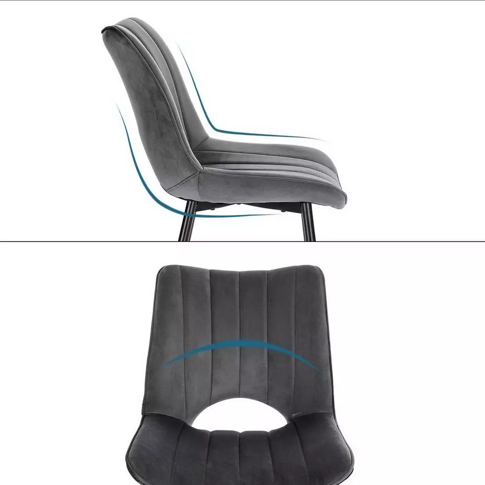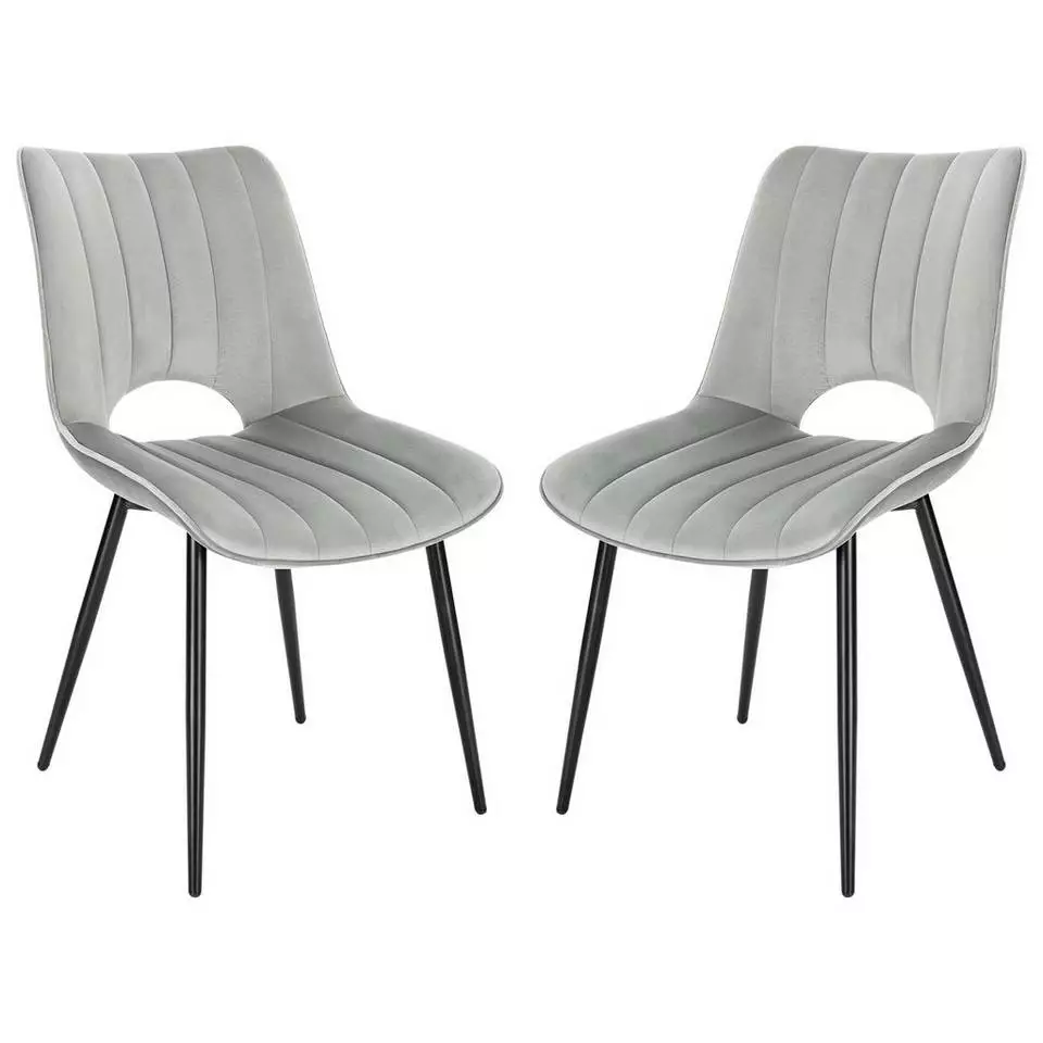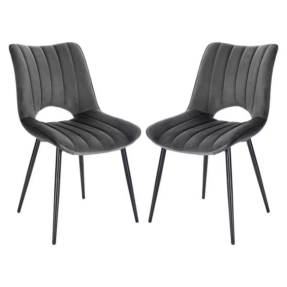 EUGAD Esszimmerstuhl (2 Stück), Küchenstuhl, Polsterstuhl, Wohnzimmerstuhl ohne Armlehne, Metallbeine, Samt, Dunkelgrau Hellgrau, Schwarz