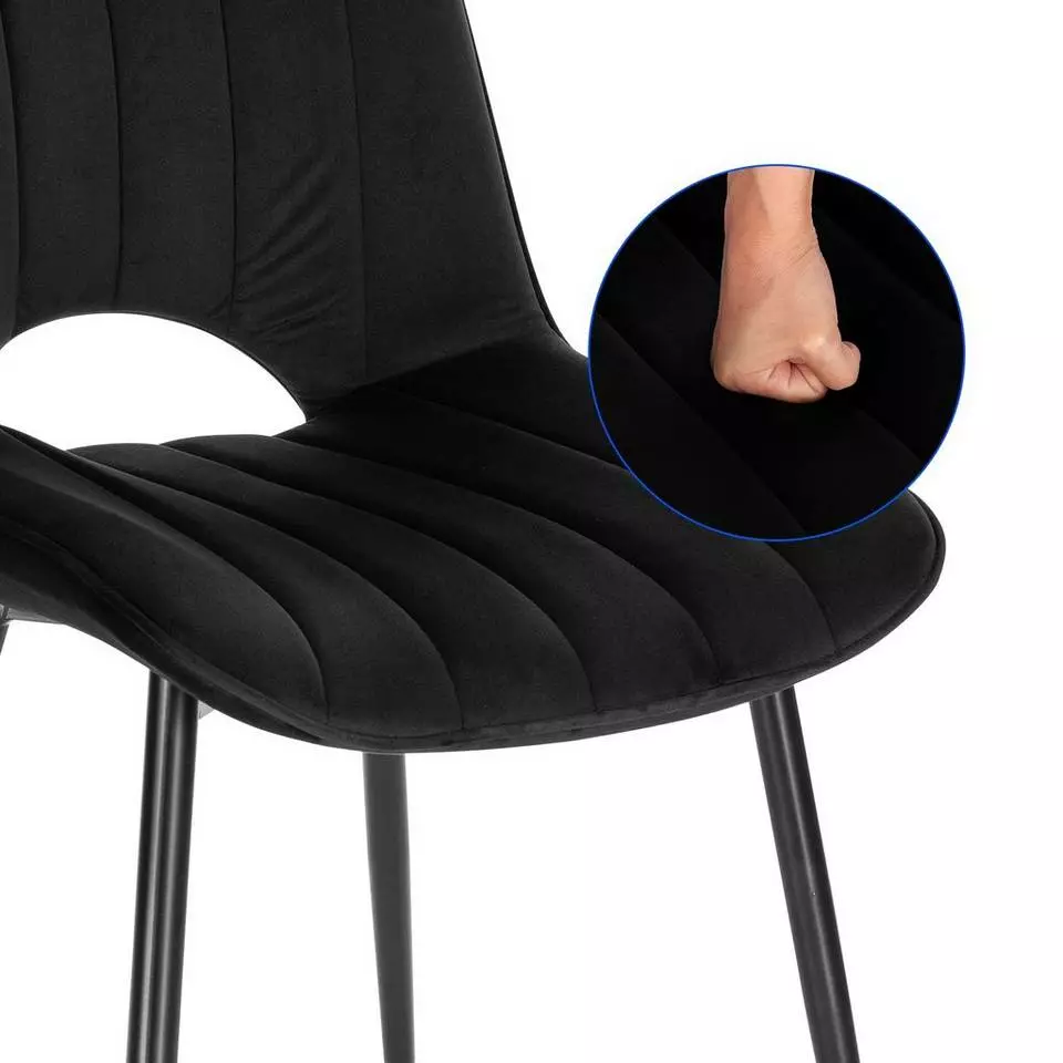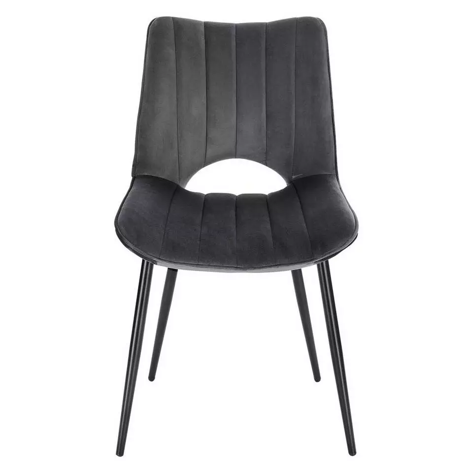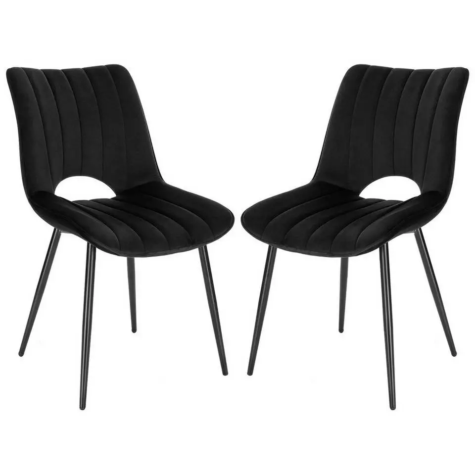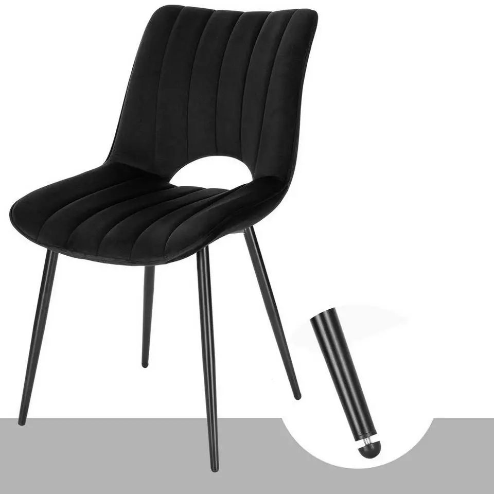 EUGAD Esszimmerstuhl (2 Stück), Küchenstuhl, Polsterstuhl, Wohnzimmerstuhl ohne Armlehne, Metallbeine, Samt, Dunkelgrau Hellgrau, Schwarz