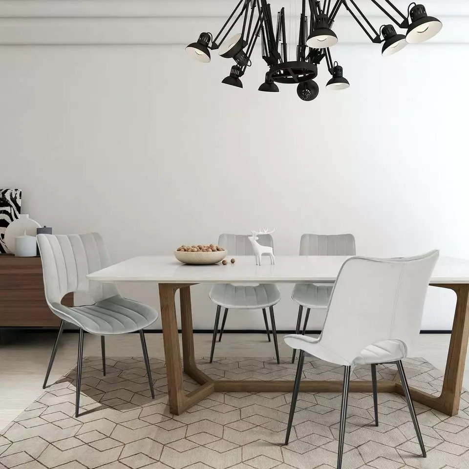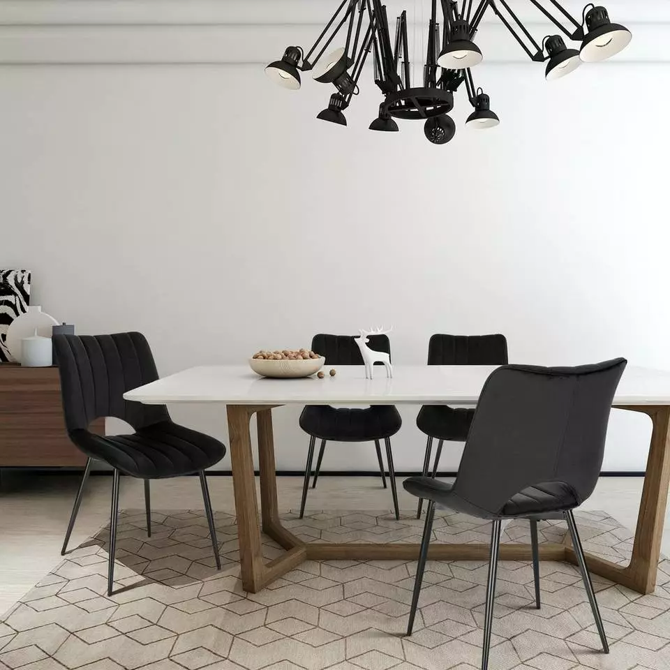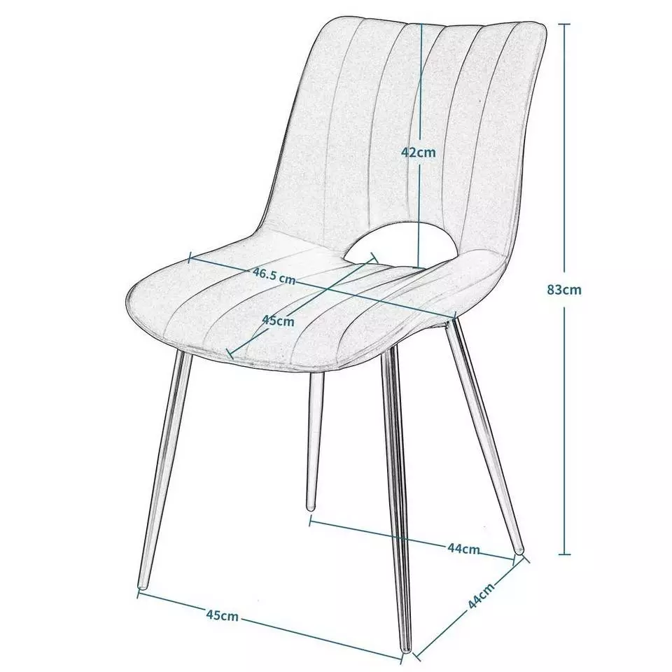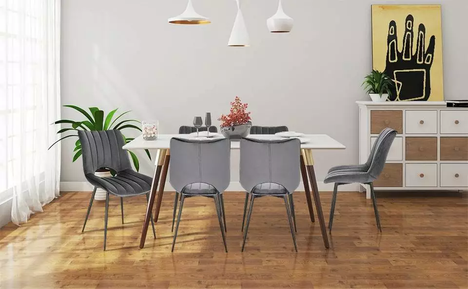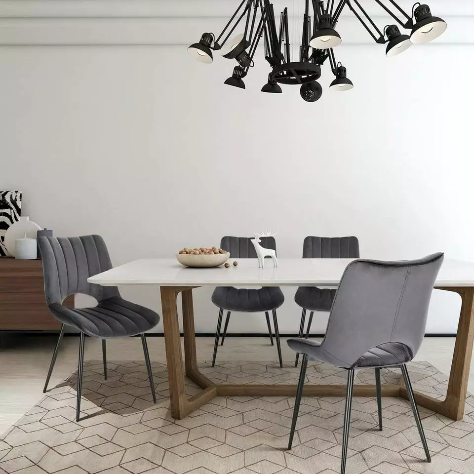 EUGAD Esszimmerstuhl (2 Stück), Küchenstuhl, Polsterstuhl, Wohnzimmerstuhl ohne Armlehne, Metallbeine, Samt, Dunkelgrau Hellgrau, Schwarz