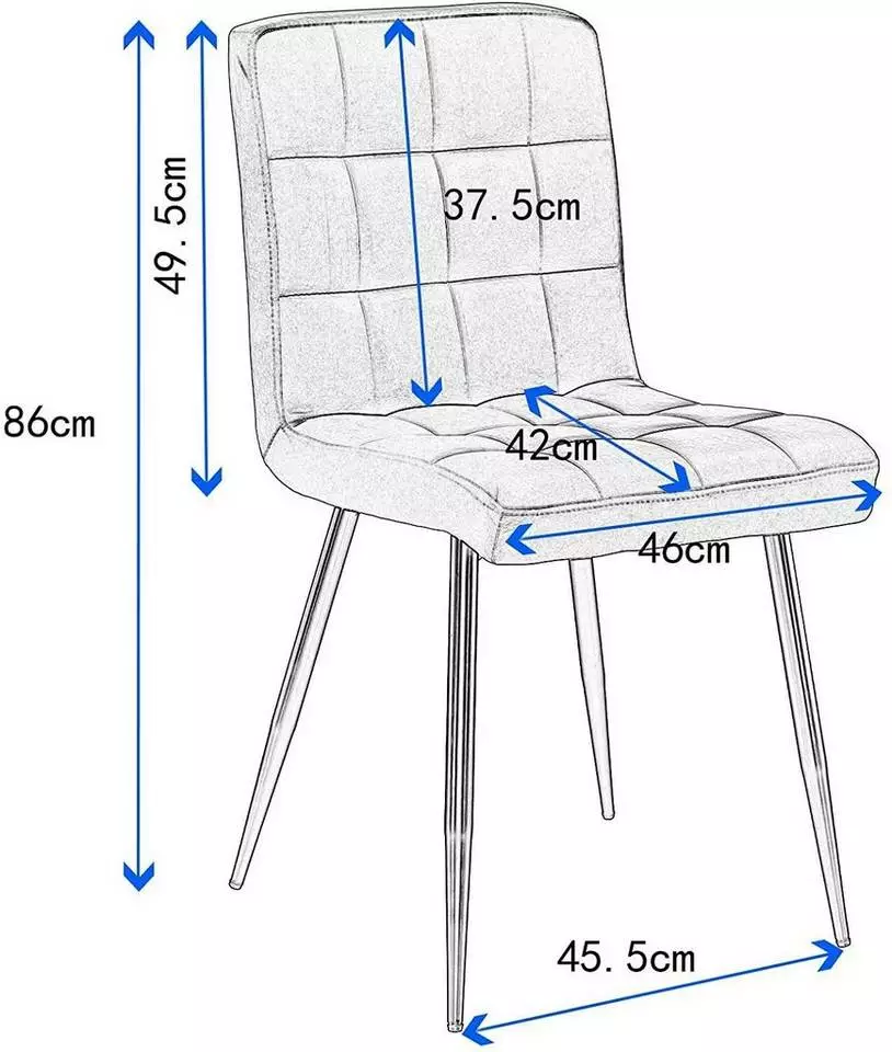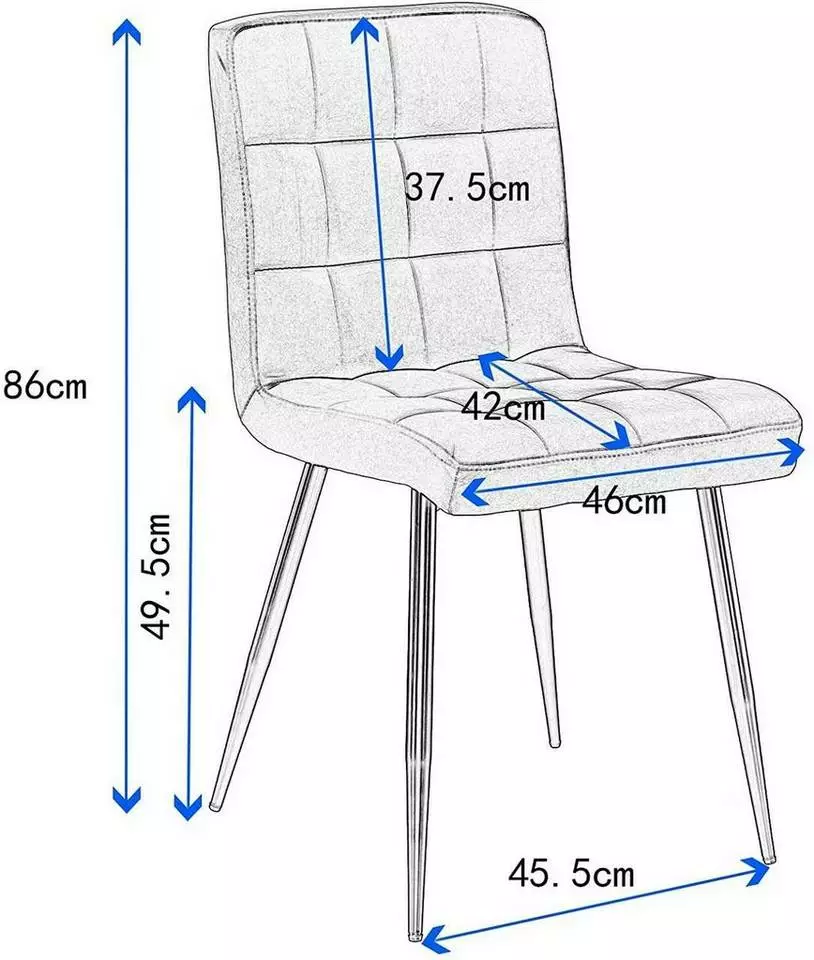 - Die Größe der Sitzfläche des Küchenstuhls beträgt 46x42cm, die Höhe der Rückenlehne beträgt 37,5cm und die Belastbarkeit ist ca.130 kg.