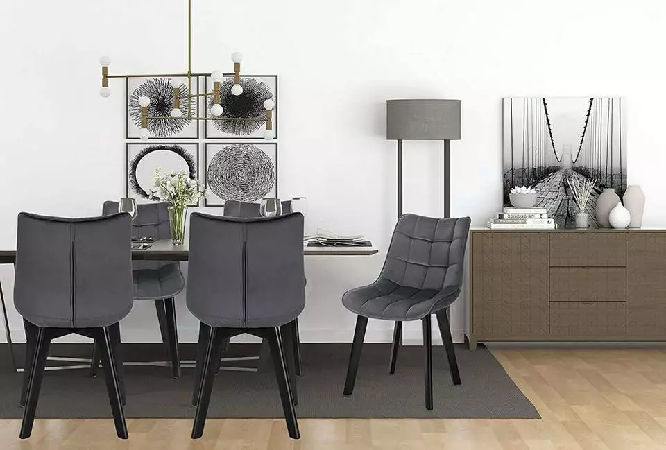 EUGAD Esszimmerstuhl (2 Stück), Wohnzimmerstuhl mit Rückenlehne, Polsterstuhl Küchenstuhl Weich Samt und Holz für ESS- und Wohnzimmer Schwarz Dunkelgrau, Dunkelgrün, Rosa