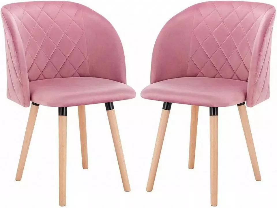 EUGAD Esszimmerstuhl, 2er-Set Esszimmerstuhl Küchenstuhl Samt Massivholz Rosa Cremeweiß