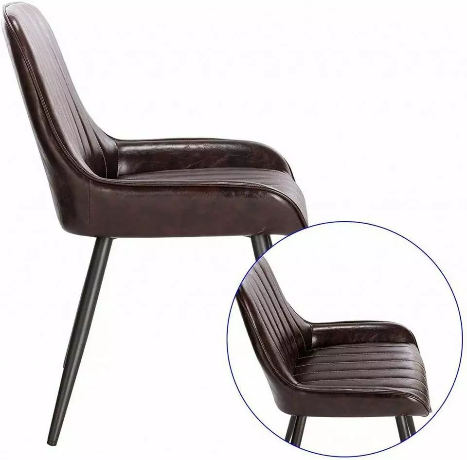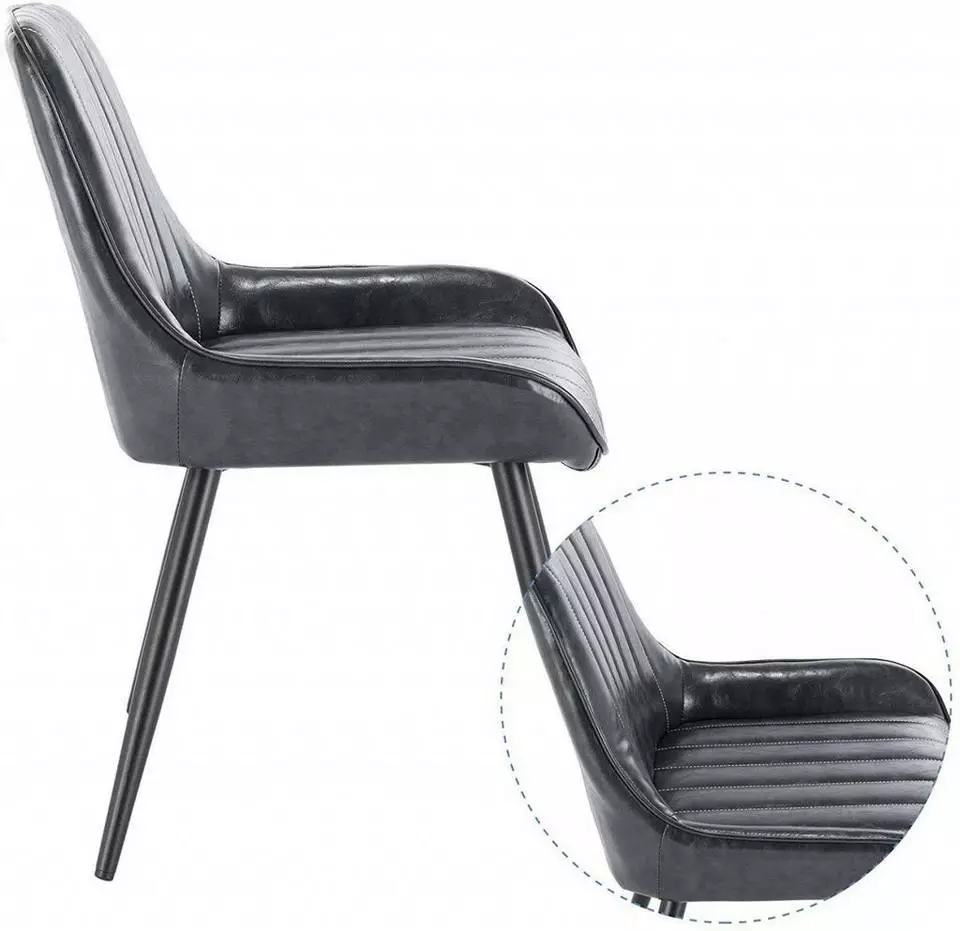 Die Beine des Esszimmerstuhls sind aus sehr stabilem Stahl, die Sitzfläche ist aus Kunstleder hergestellt.
