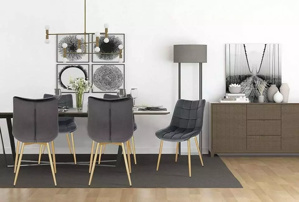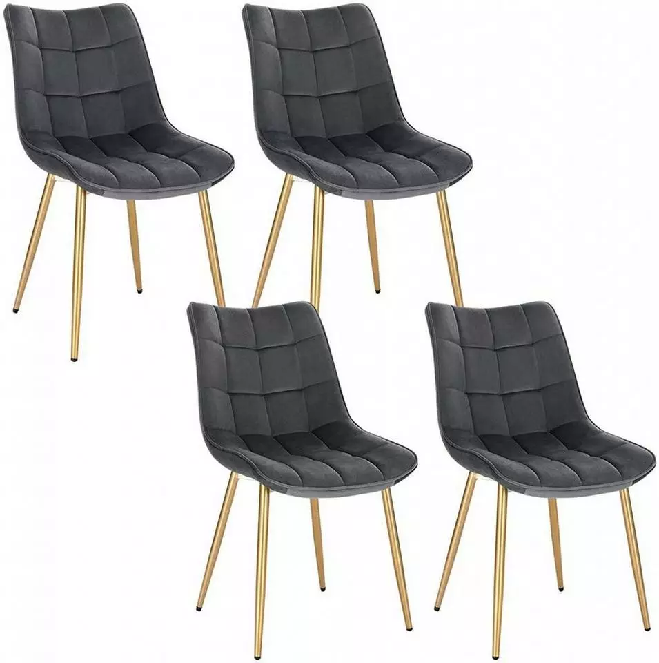 EUGAD Esszimmerstuhl, 4er-Set Küchenstühle Wohnzimmerstuhl mit Rückenlehne, Samt Sitzfläche, Gold Beine Grau Dunkelgrün, Rosa, Schwarz