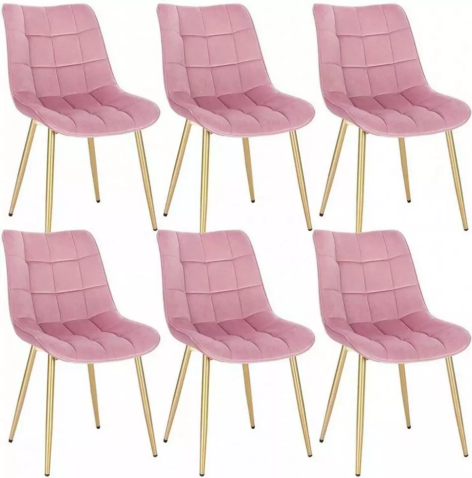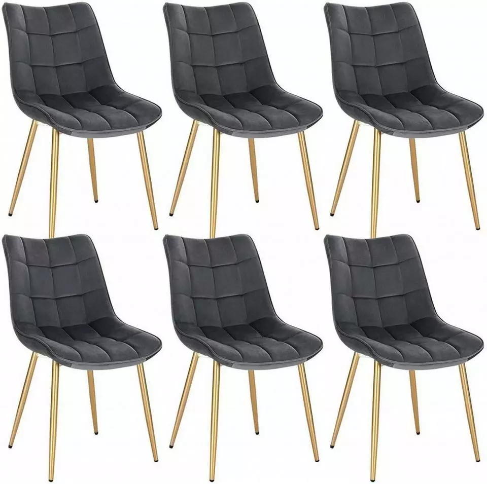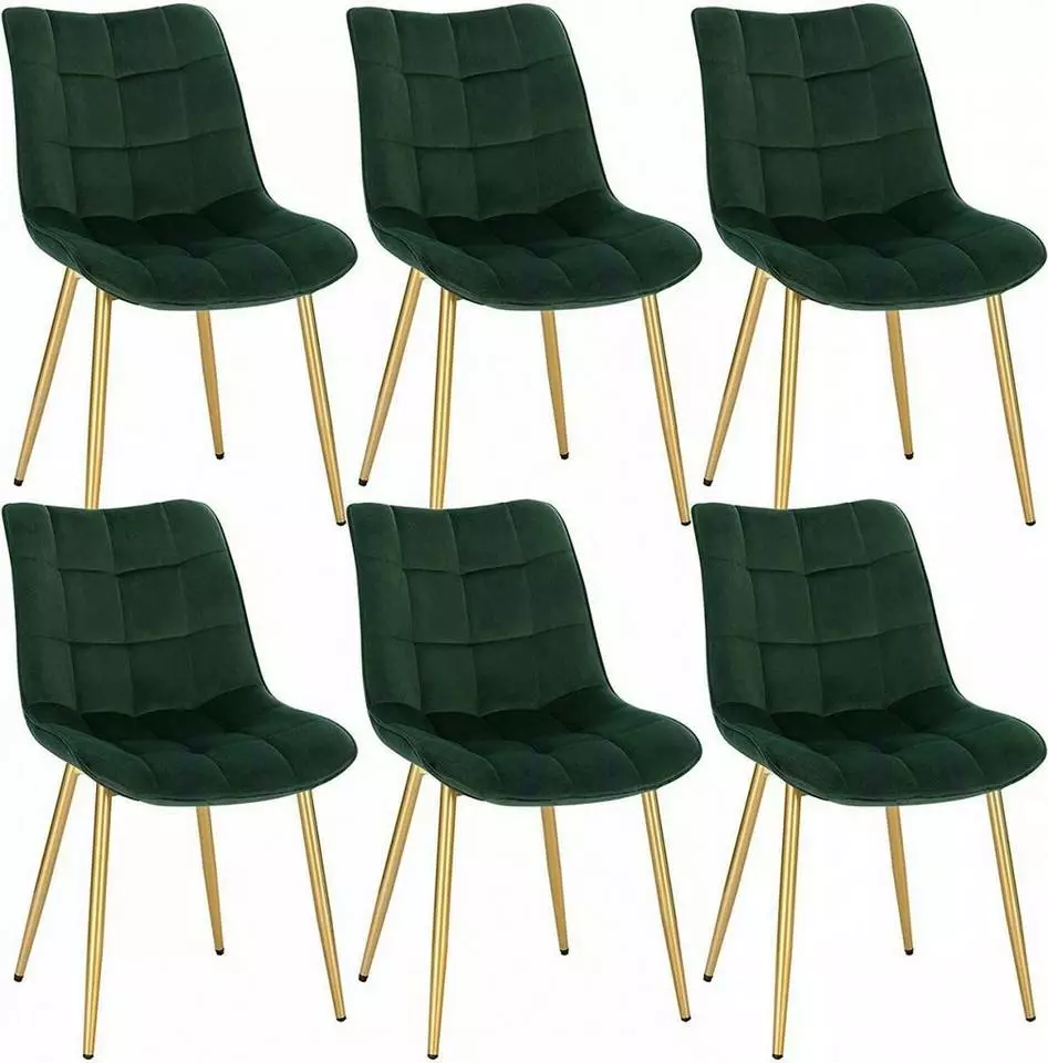 - 6er-Set Küchenstühle aus Samt goldene Beine