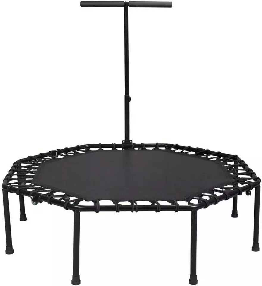 | Besondere Merkmale | Fitness Trampolin Indoor Faltbar Ø 126cm mit höhenverstellbarem Haltegriff, leise Gummiseilfederung, belastbar bis 120 kg |