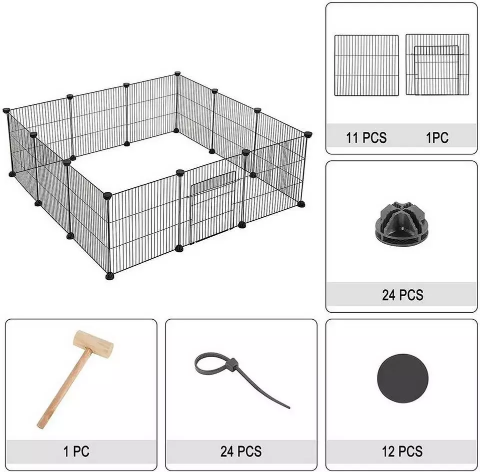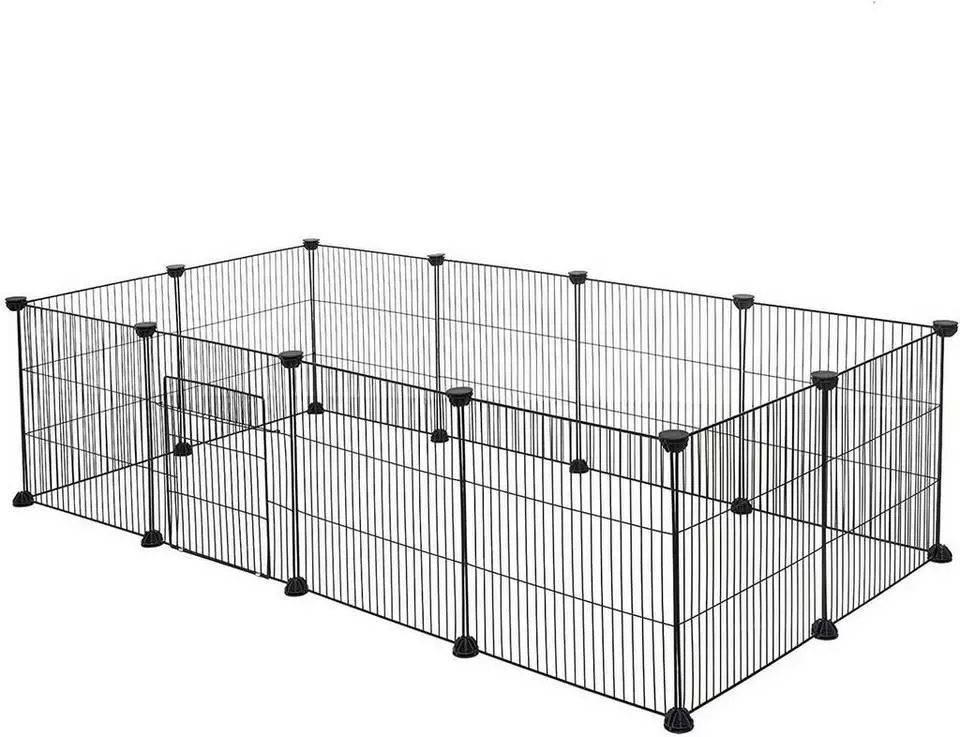 EUGAD Freigehege, Freigehege für Kaninchen Hasen Meerschweinchen Welpenauslauf Kleintiergehege Laufgitter mit Tür DIY 12 Platten Schwarz 142 x 72 x 36 cm