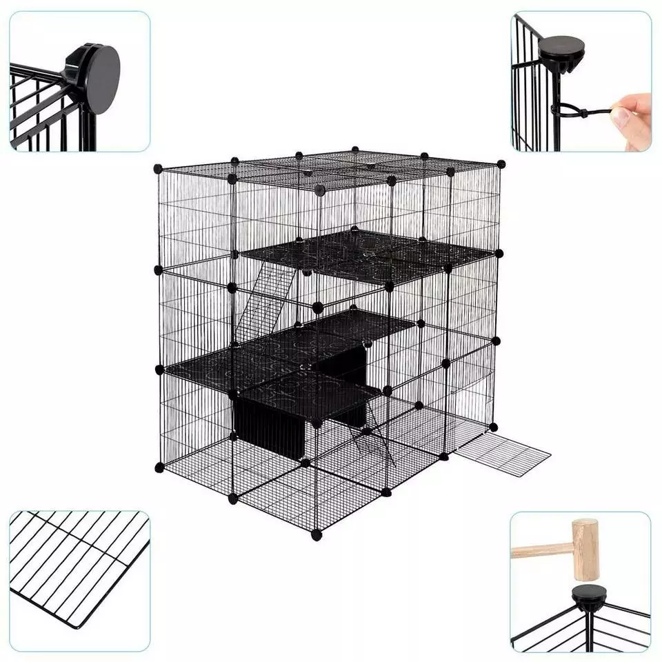 - Der mit einer Kappe versehene Haustierzaun eignet sich besonders für kleine Haustiere mit starken Sprungfähigkeiten