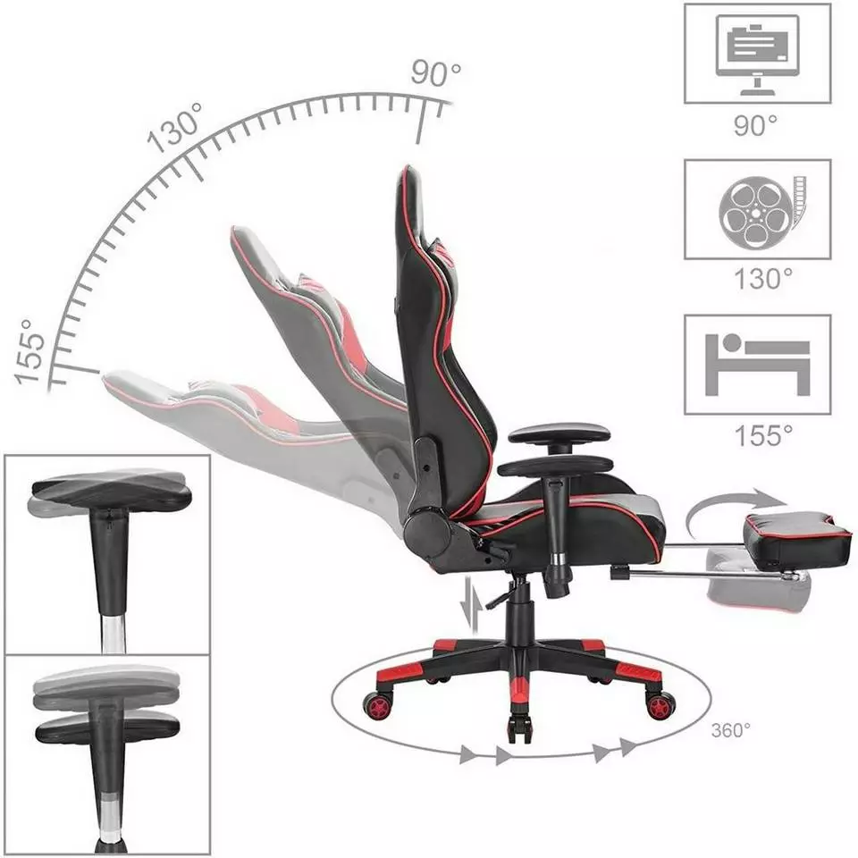 - Die Rückenlehne ist nach hinter bis zu max. 155 Grad verstellbar. Wenn Sie müde wären, können Sie sich auf diesen Stuhl legen.