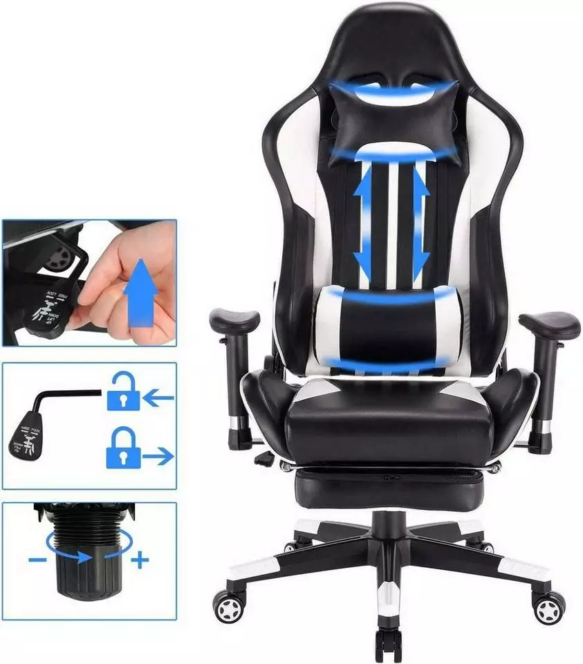 - Gaming Stuhl mit Kopf- und Lendenkissen, beim Sitzen wird Ihre Wirbelsäule unterstützt. Sodass Sie weinger Rückenschmerz nach längere Sitz am Tisch bekommen.