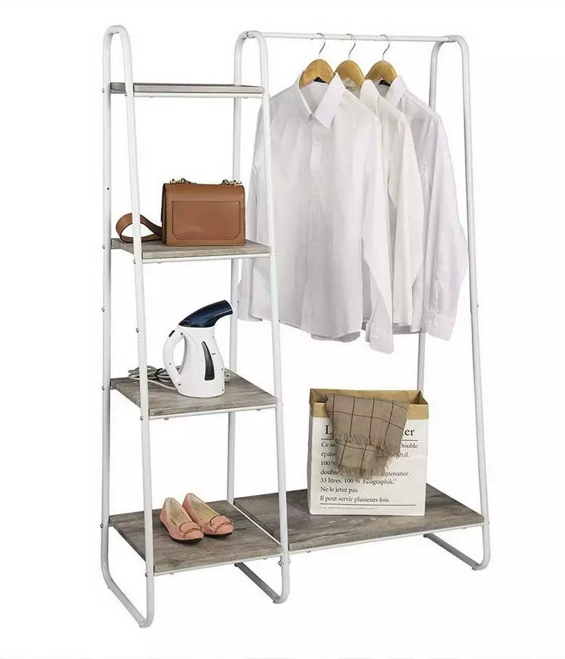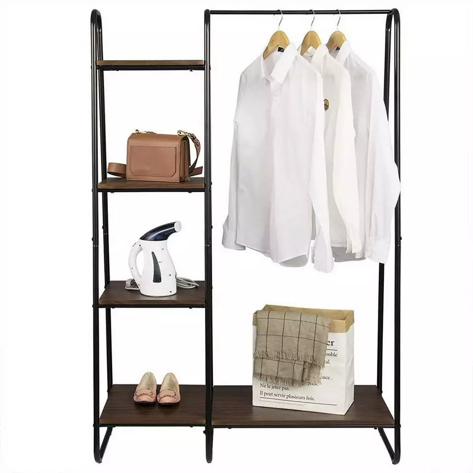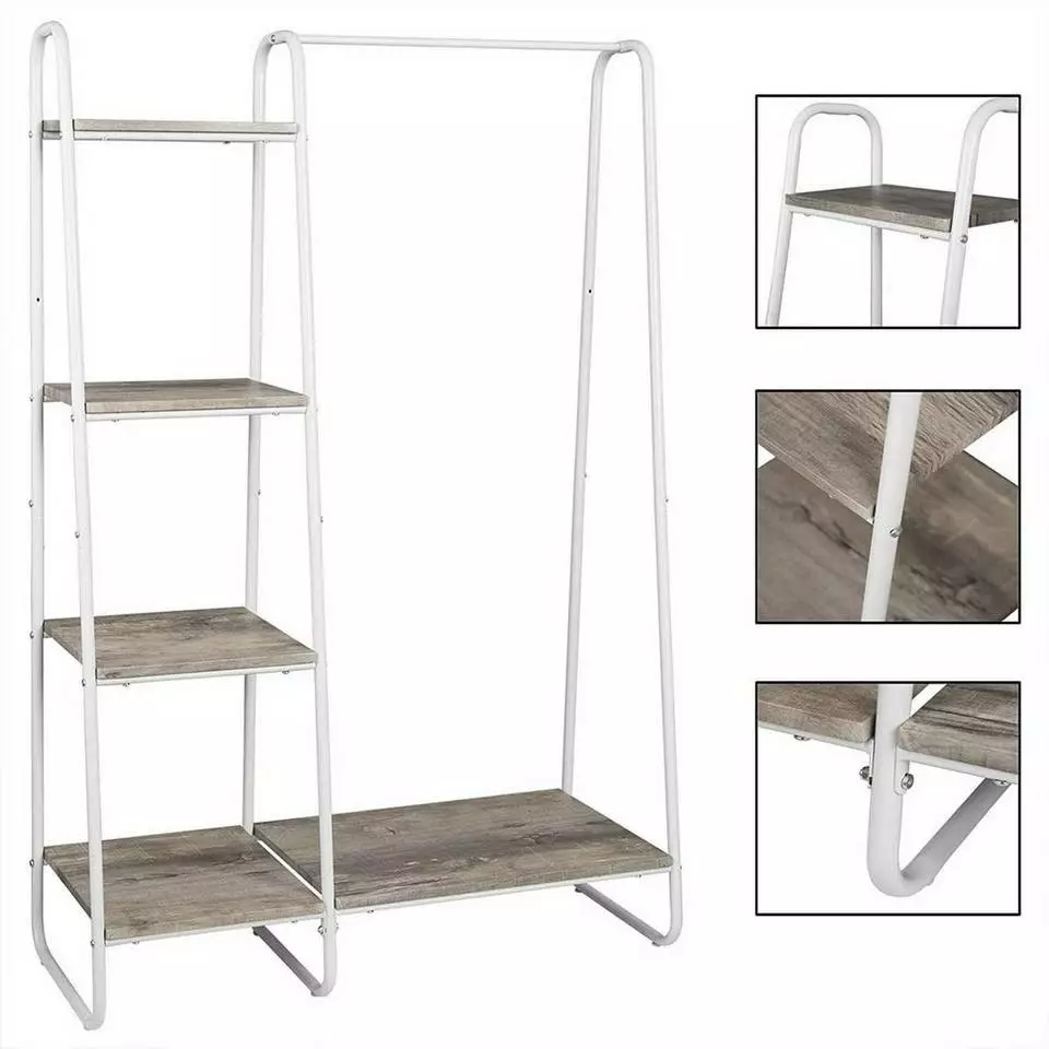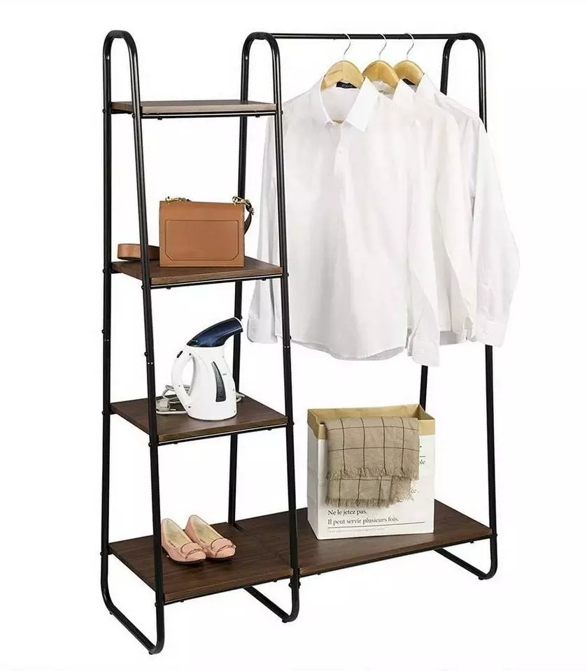 EUGAD Garderobenständer, Kleiderständer,mit Regal, Metall, Holz,im Flur, Wohnzimmer, Dunkelbraun-Schwarz Eiche-Weiß, Sand-Weiß