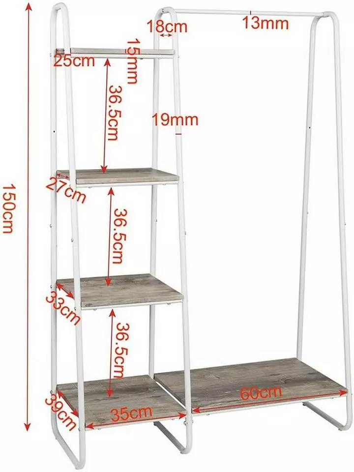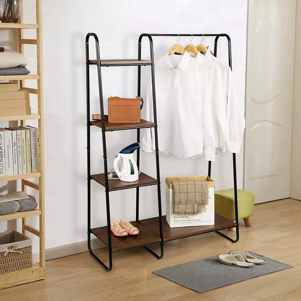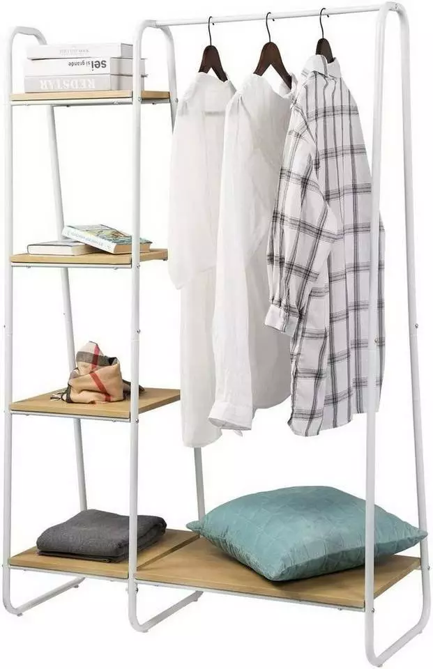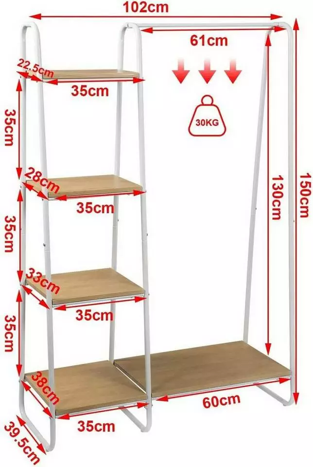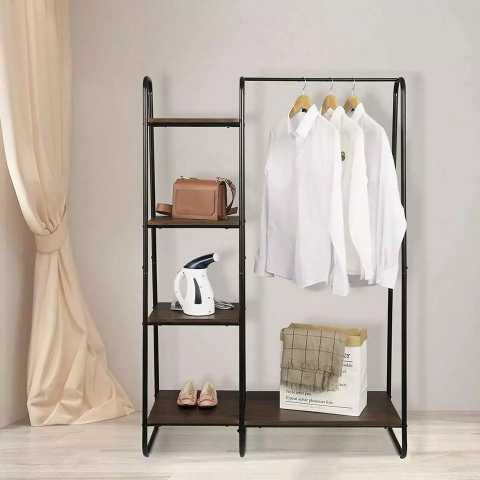 EUGAD Garderobenständer, Kleiderständer,mit Regal, Metall, Holz,im Flur, Wohnzimmer, Dunkelbraun-Schwarz Eiche-Weiß, Sand-Weiß
