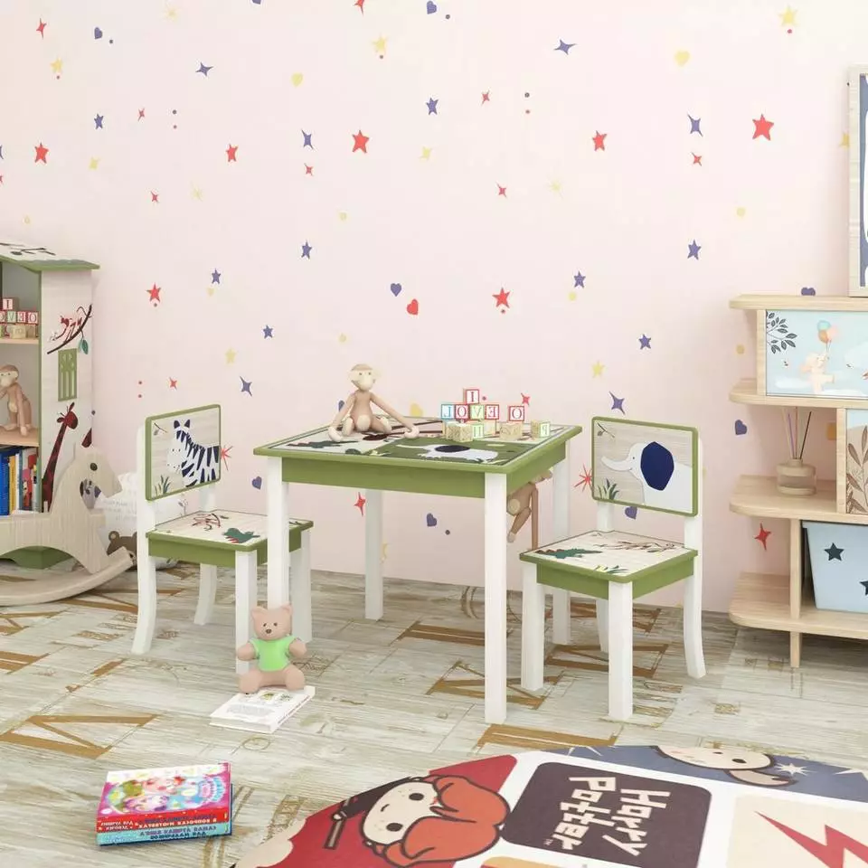 Die farbenfrohe Kindersitzgruppe mit Zoomotiven kann das Interesse der Kleinen am Lesen, Erfinden und Essen an einem festen Ort wecken.