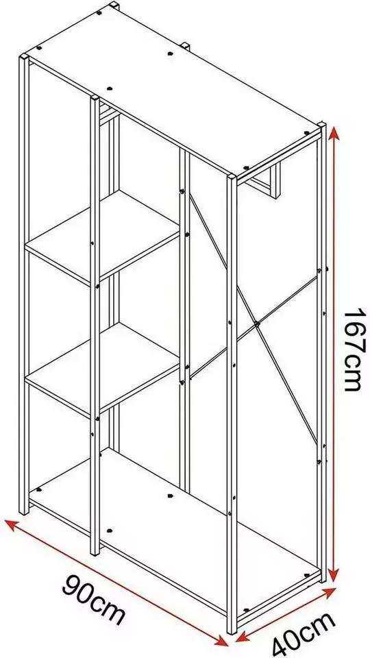 - Maße: 90 x 40 x 167 cm ( L x T x H )