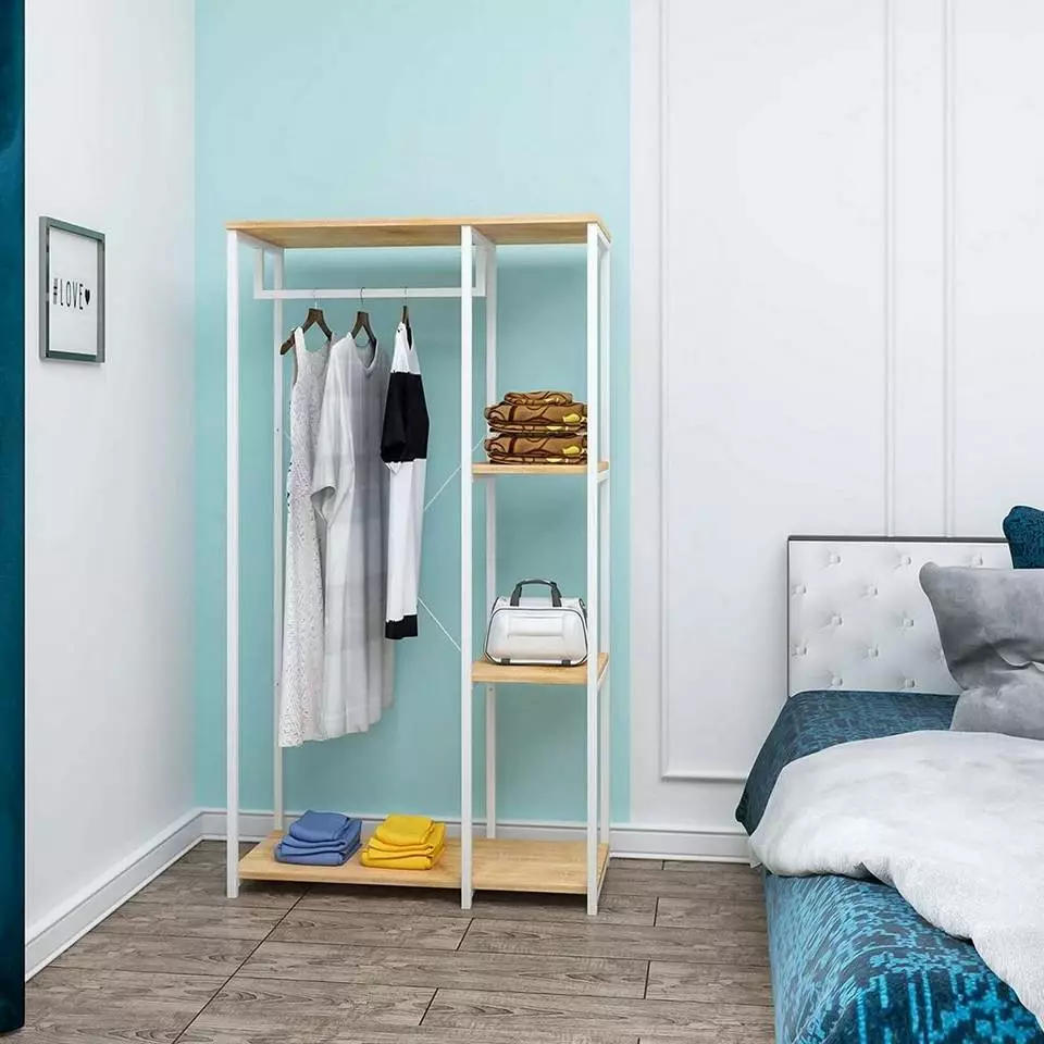 - Die Stange für Aufhängen der Kleider die zentrale Stange kann weggenommen werden