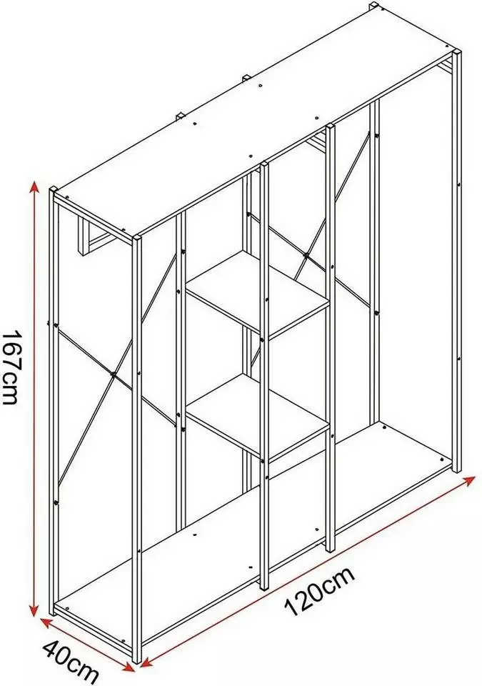 - Maße: 120 x 40 x 167 cm ( L x T x H )
