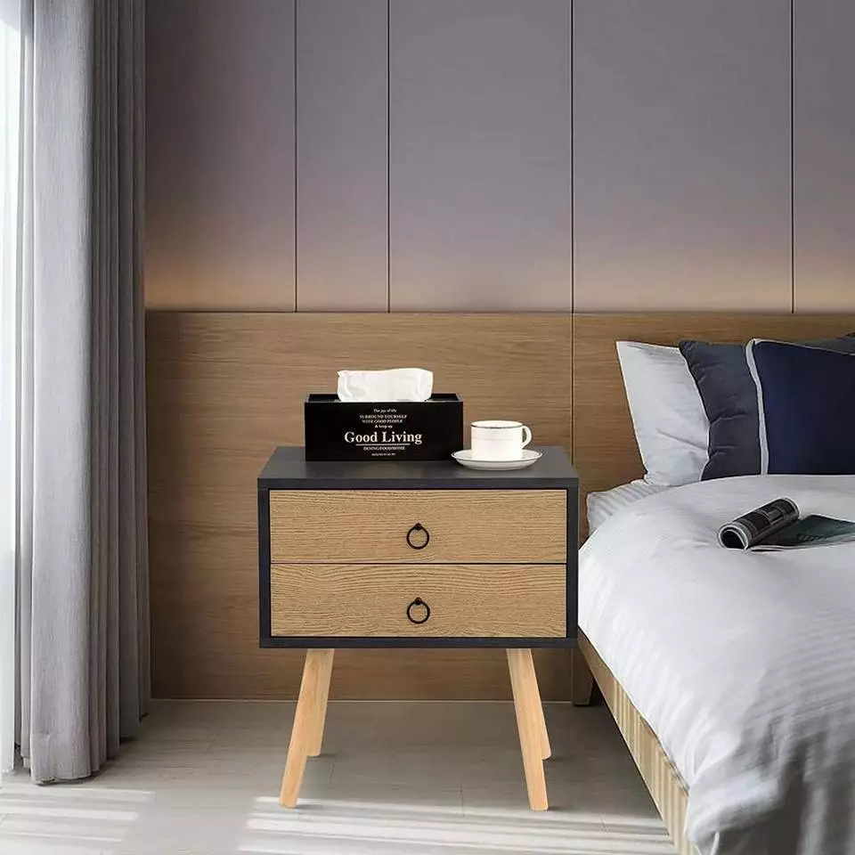 - Nachttisch mit 2 Schubladen, Beine aus Massivholz