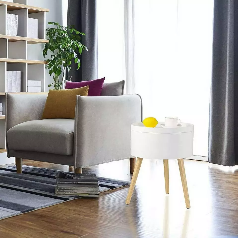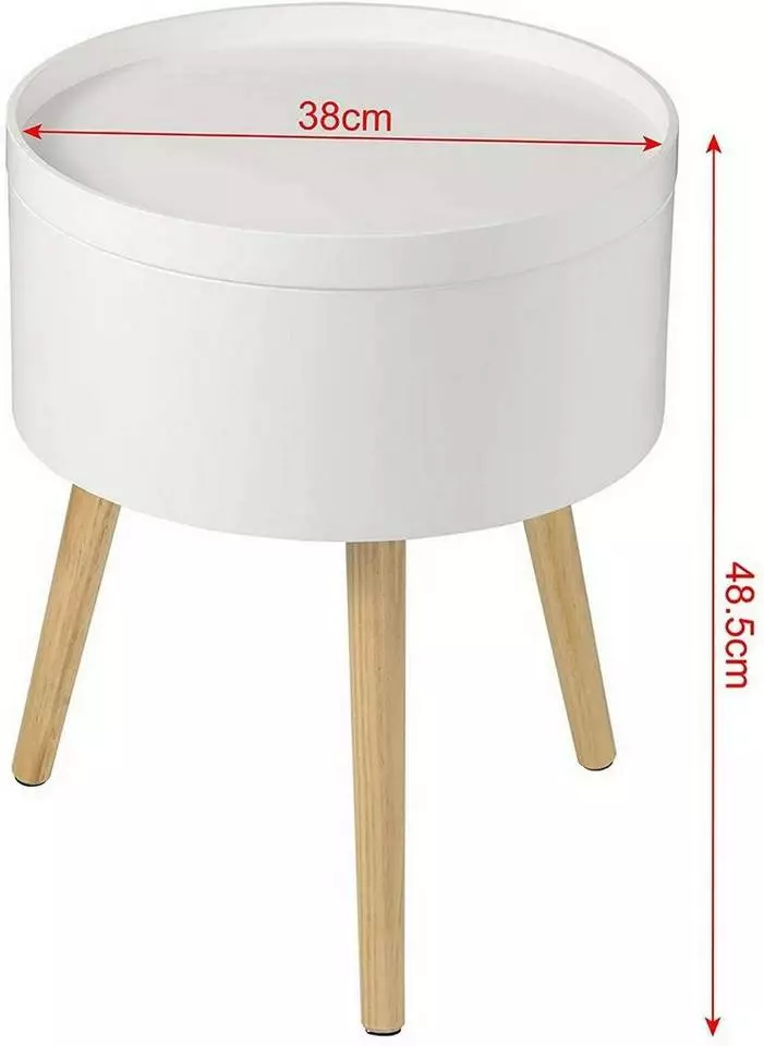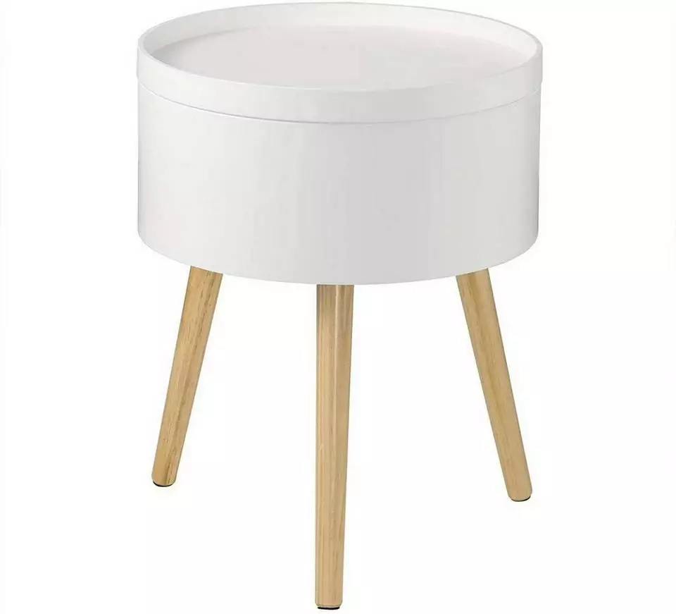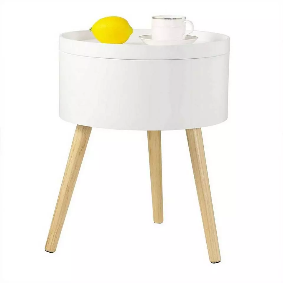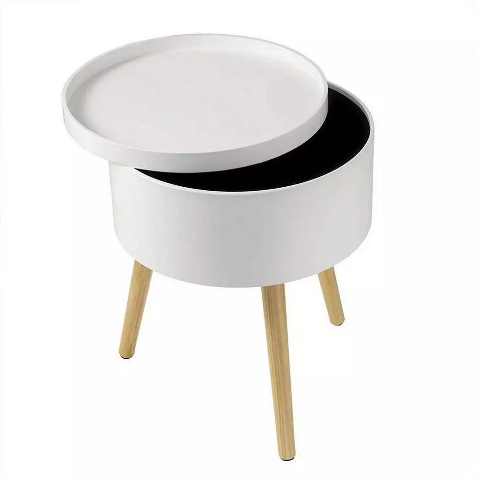 - Runder Nachttisch mit Stauraum aus MDF Weiß
