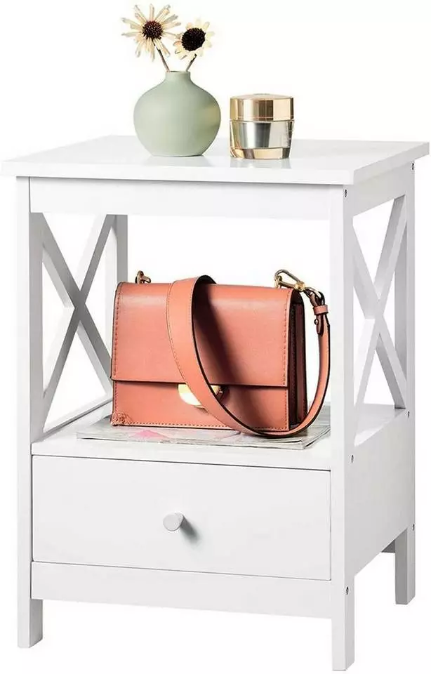 EUGAD Nachttisch, Beistelltisch Nachtschrank Nachtkommode Sofatisch aus MDF mit Schublade und Ablage für Schlafzimmer oder Wohnzimmer Weiß
