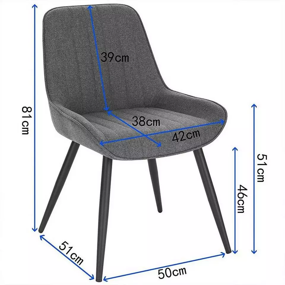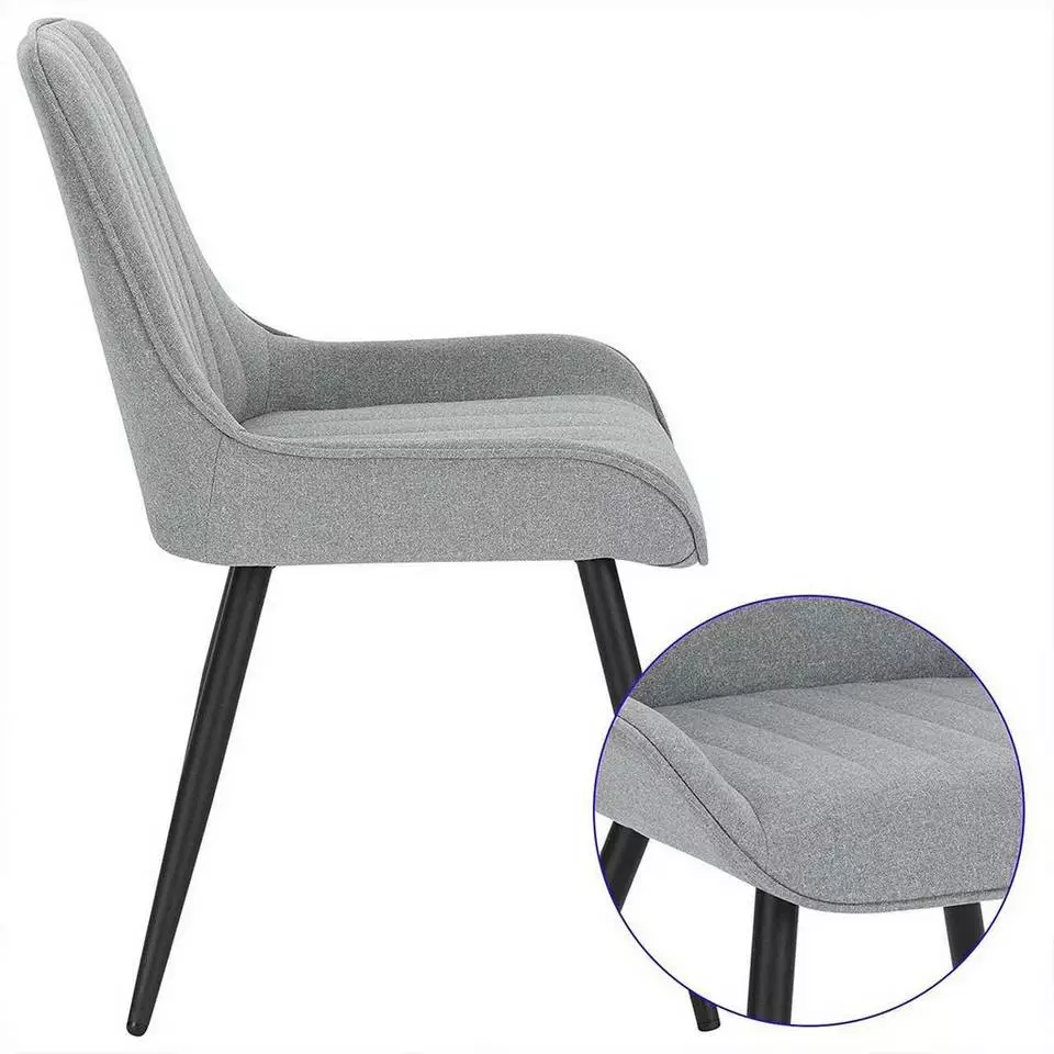 Die Beine des Esszimmerstuhls sind aus sehr stabilem Stahl, die Sitzfläche ist aus Leinen hergestellt.
