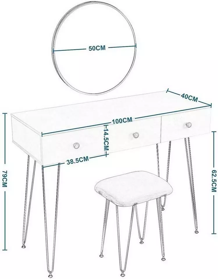 - Durch Lieferung werden Sie einen Tisch, einen Spiegel, einen Hocker und eine Aufbauanleitung bekommen.