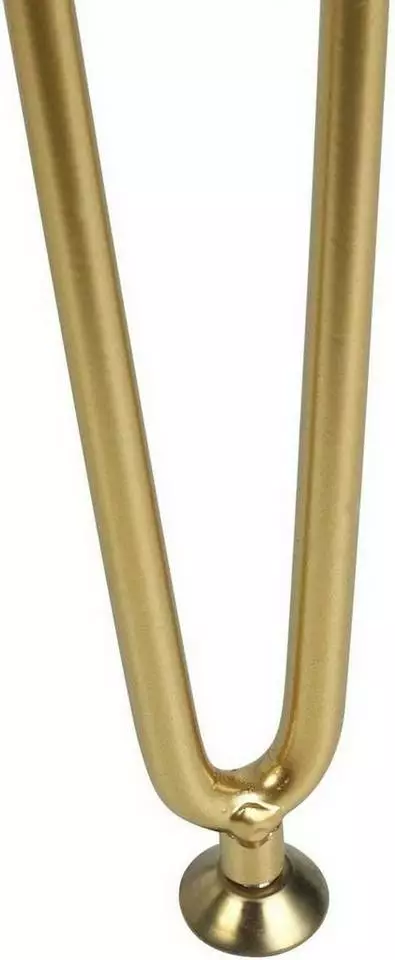 - Die weiße glänzende Tischplatte mit goldenen V-förmigen Beinen macht das Möbelstück einfach, aber stilvoll. Er lässt sich leicht in moderne Wohnräume integrieren.