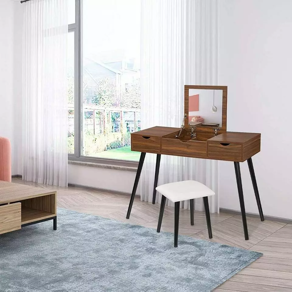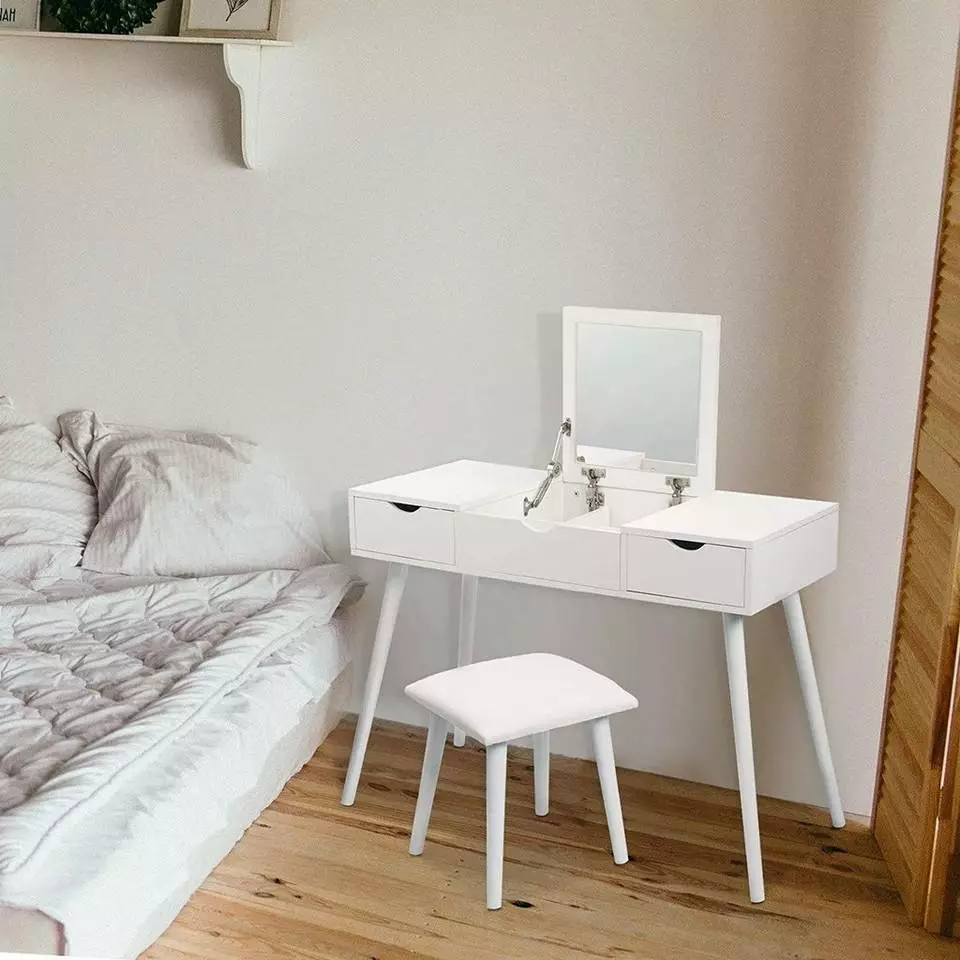 - Großzügige Stauraum, der Schminktisch verfügt über 2 Schubladen und eine Ablagefläche unter dem Spiegel, die sich ideal zur Aufbewahrung von Make-up und sonstige Accessoires eignen.