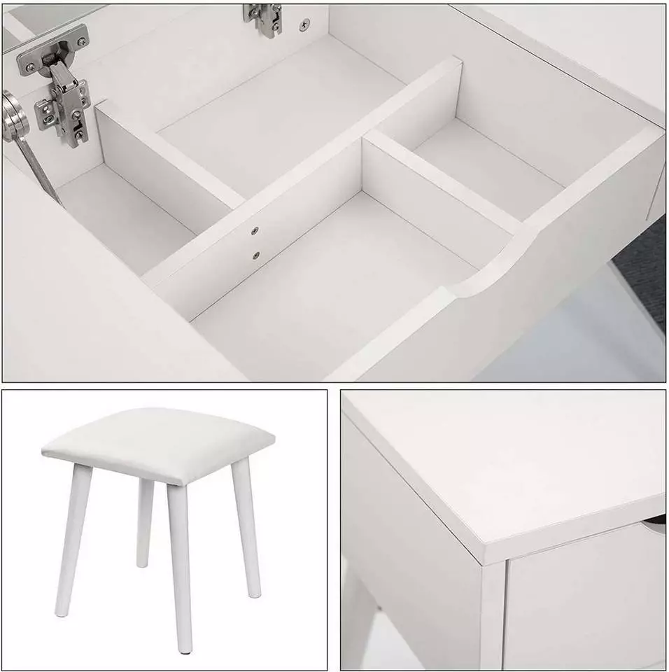 - Lieferumfang: 1 x Schminktisch, 1 x Hocker, 1 x Anleitung