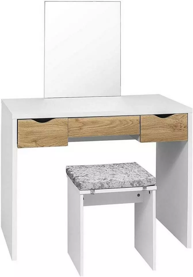 - Schminktisch 3 Schubladen mit Hocker und Spiegel