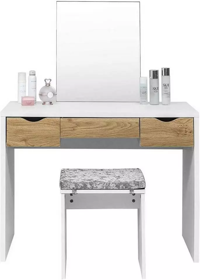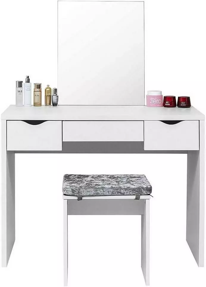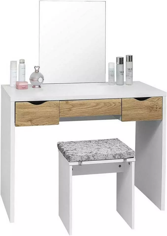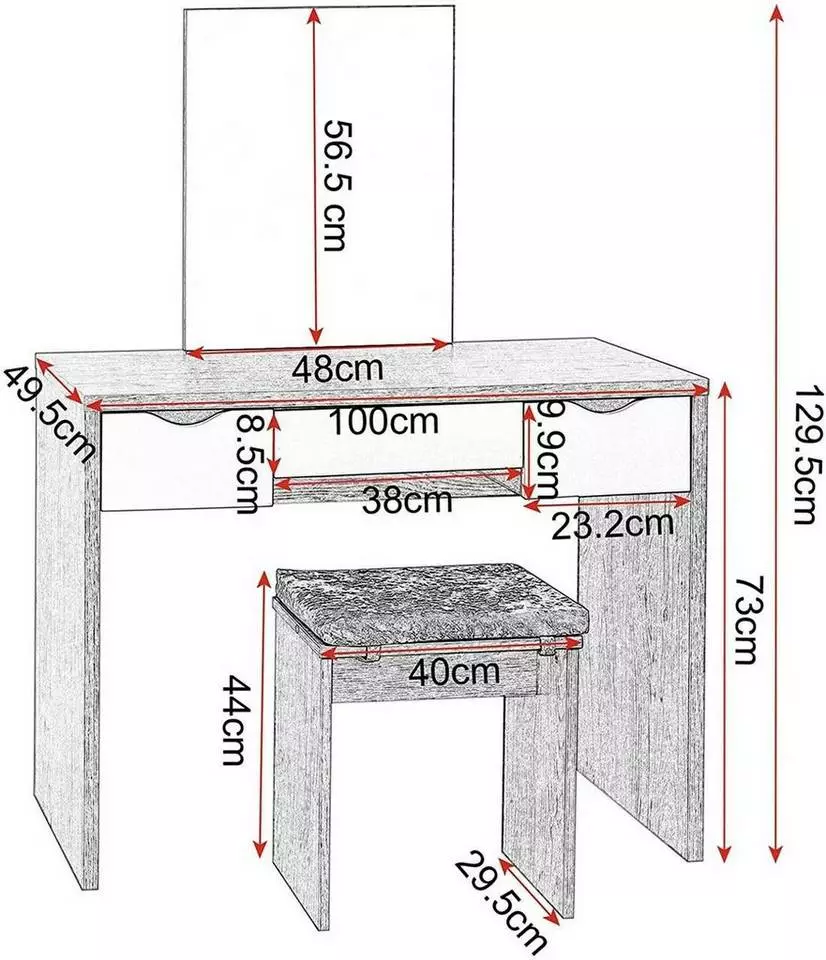 - Lieferumfang: 1 x Schminktisch, 1 x Hocker, 1 x Anleitung