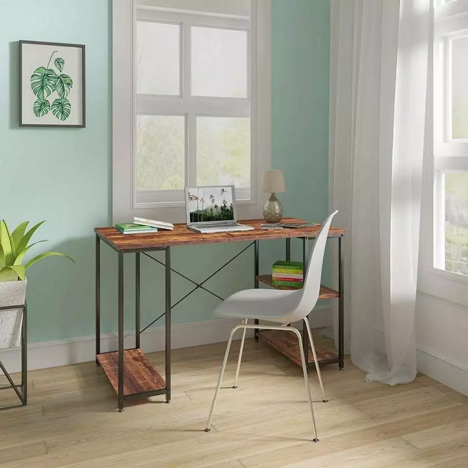 EUGAD Schreibtisch, Bürotisch PC-Tisch mit Ablage aus Metall und Holz, 120x60x75cm, Vintage – Bild 2