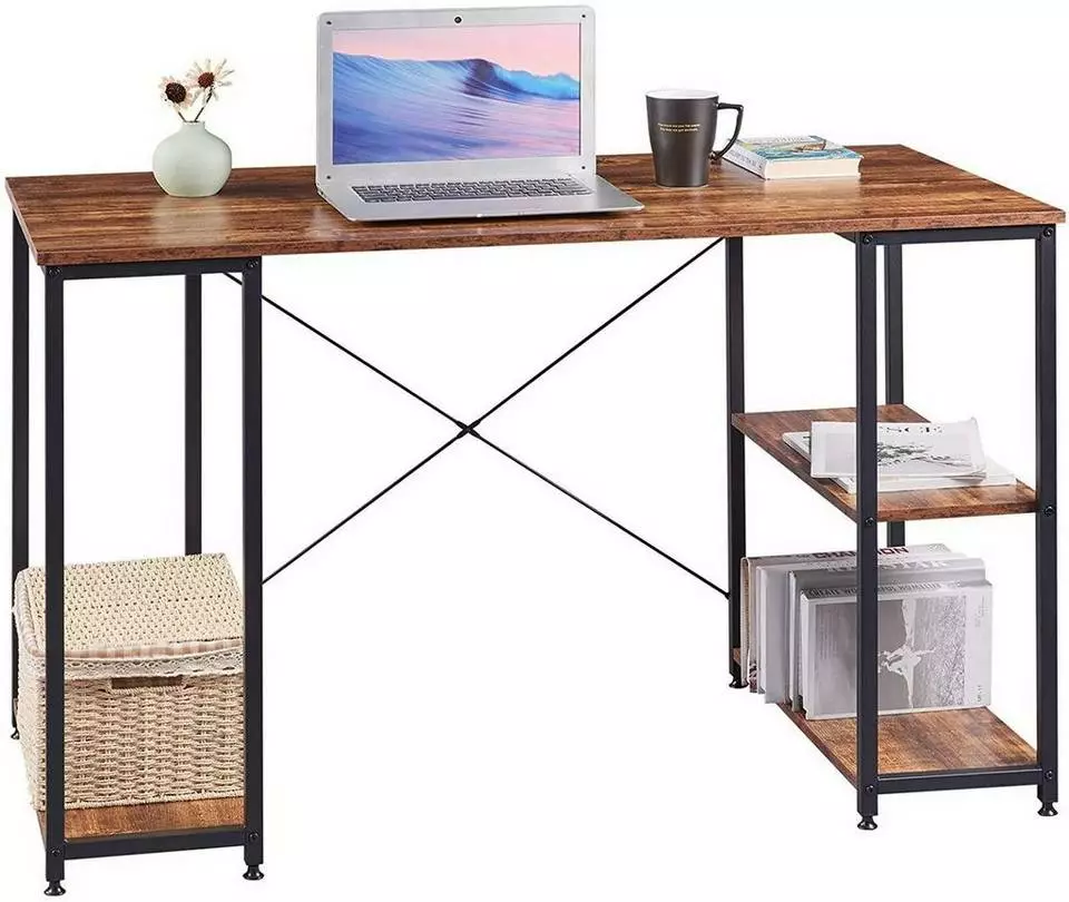 • Dieser Schreibtisch ist aus hochwertigem MDF-Platte und Metall hergestellt. Das Regal kann links oder rechts platziert werden.