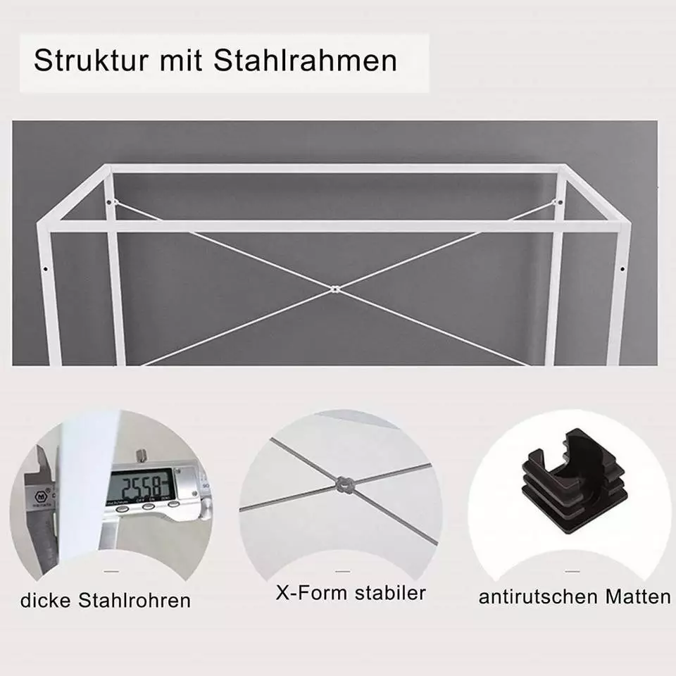 - Alle Metallteile und Stahlrahmen sind rostfrei