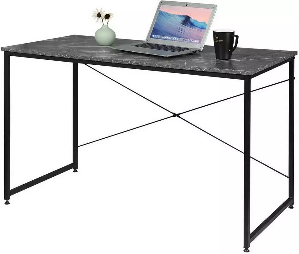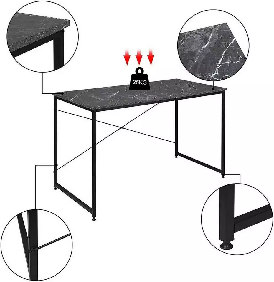 EUGAD Schreibtisch, mit Bücherregal 120x60x70 cm Schwarz Marmor Holz Vintage
