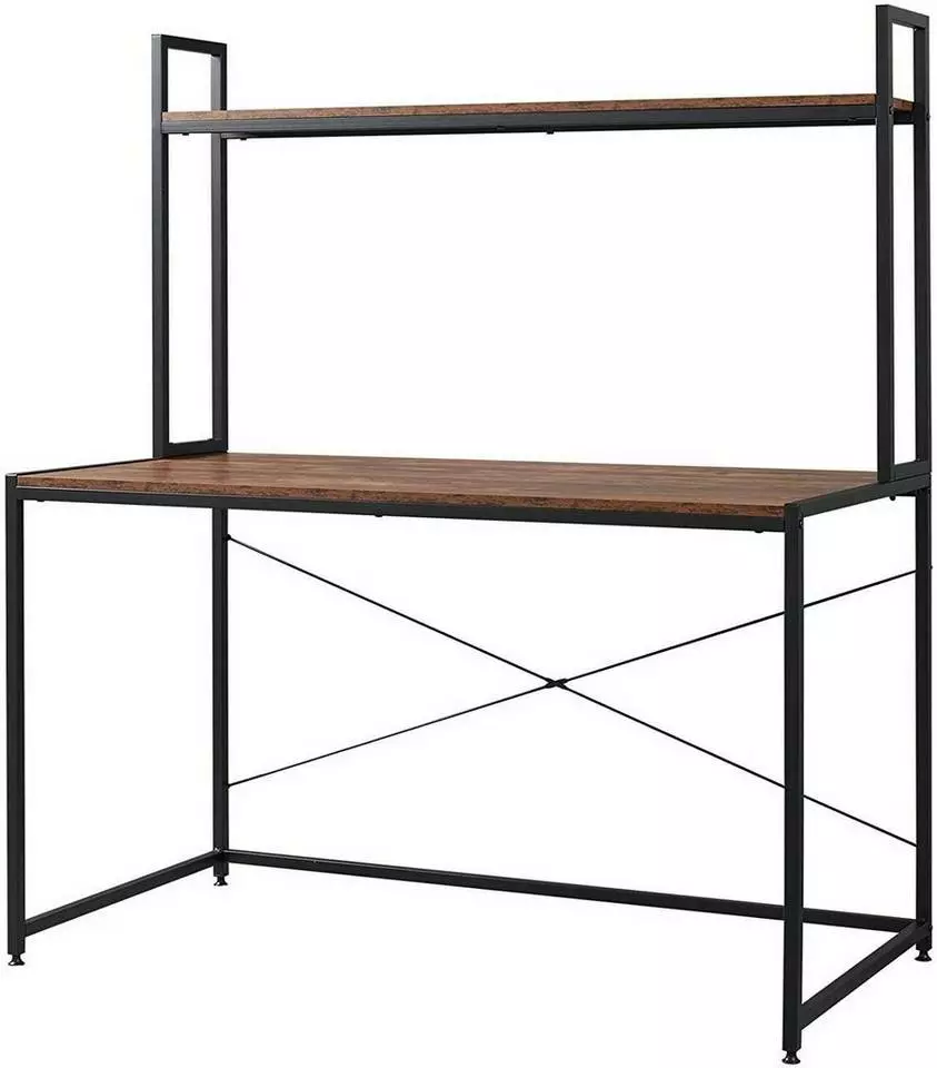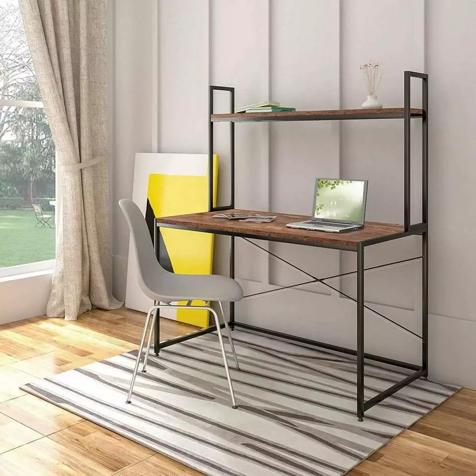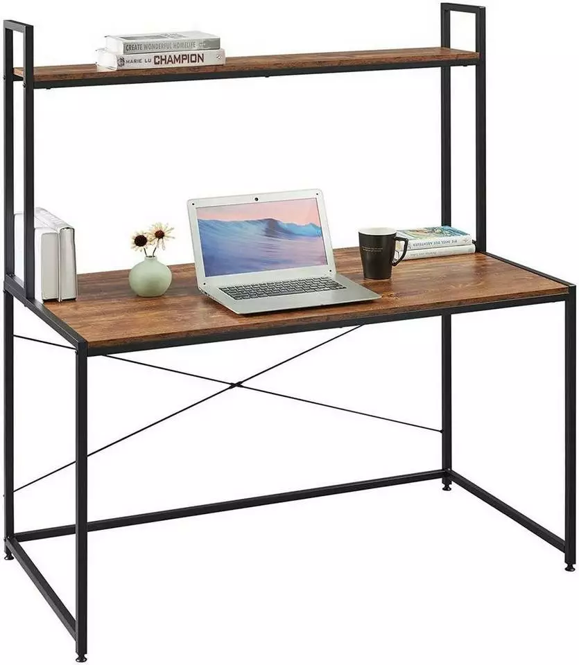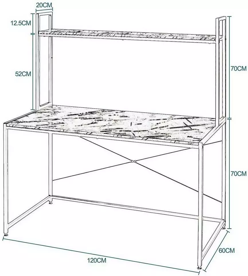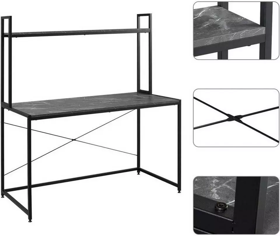 EUGAD Schreibtisch, PC-Tisch Bürotisch Arbeitstisch mit Bücherregal Holz 120x60x140 cm Schwarz-Marmor Schwarz-Vintage