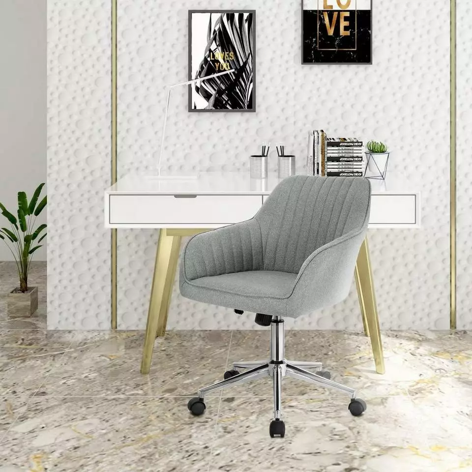 EUGAD Schreibtischstuhl, Bürostuhl Bürohocker Rollhocker aus Leinen Hellgrau Duneklgrau