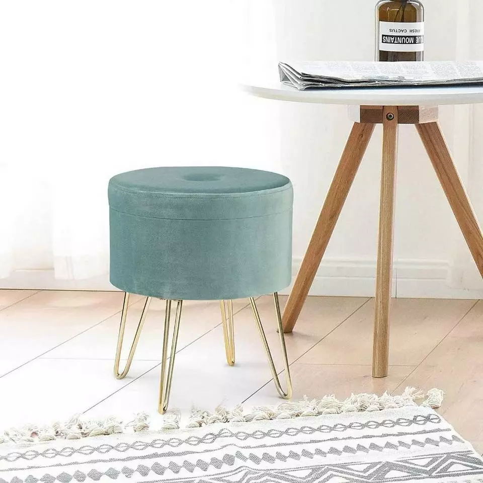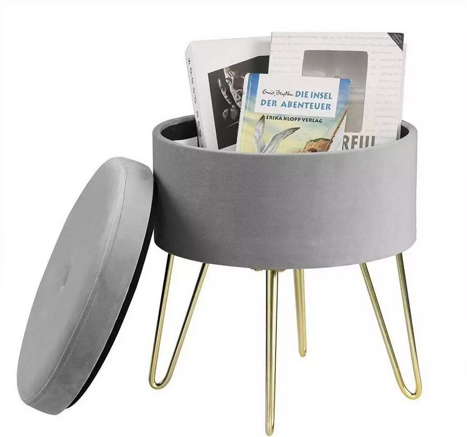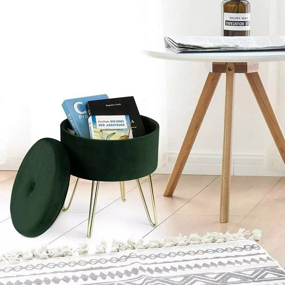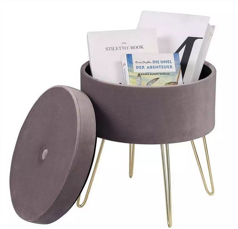 - Dieser Samthocker verfügt über einen eingebauten riesigen Stauraum. Solange Sie den Deckel des Hockers öffnen, können Sie Ihre aktuellen nicht genutzten Gegenstände zur Aufbewahrung in den Hocker legen.