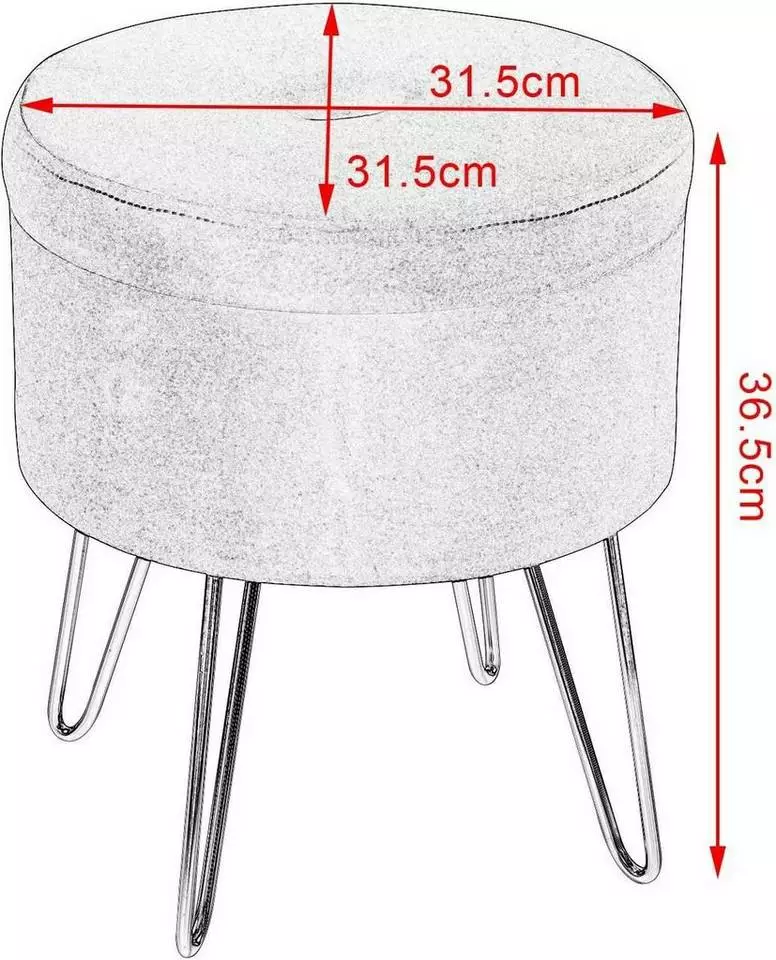 - Der Sitz des Hockers besteht aus weichem Samt, der Rahmen des Hockers aus MDF-Faserplatte (Stufe E1) und die Basis aus Metall, das sehr stark ist, was garantiert, dass Sie stabil darauf sitzen können.