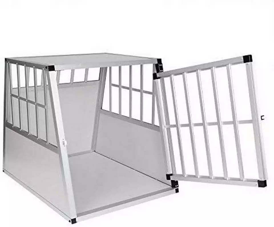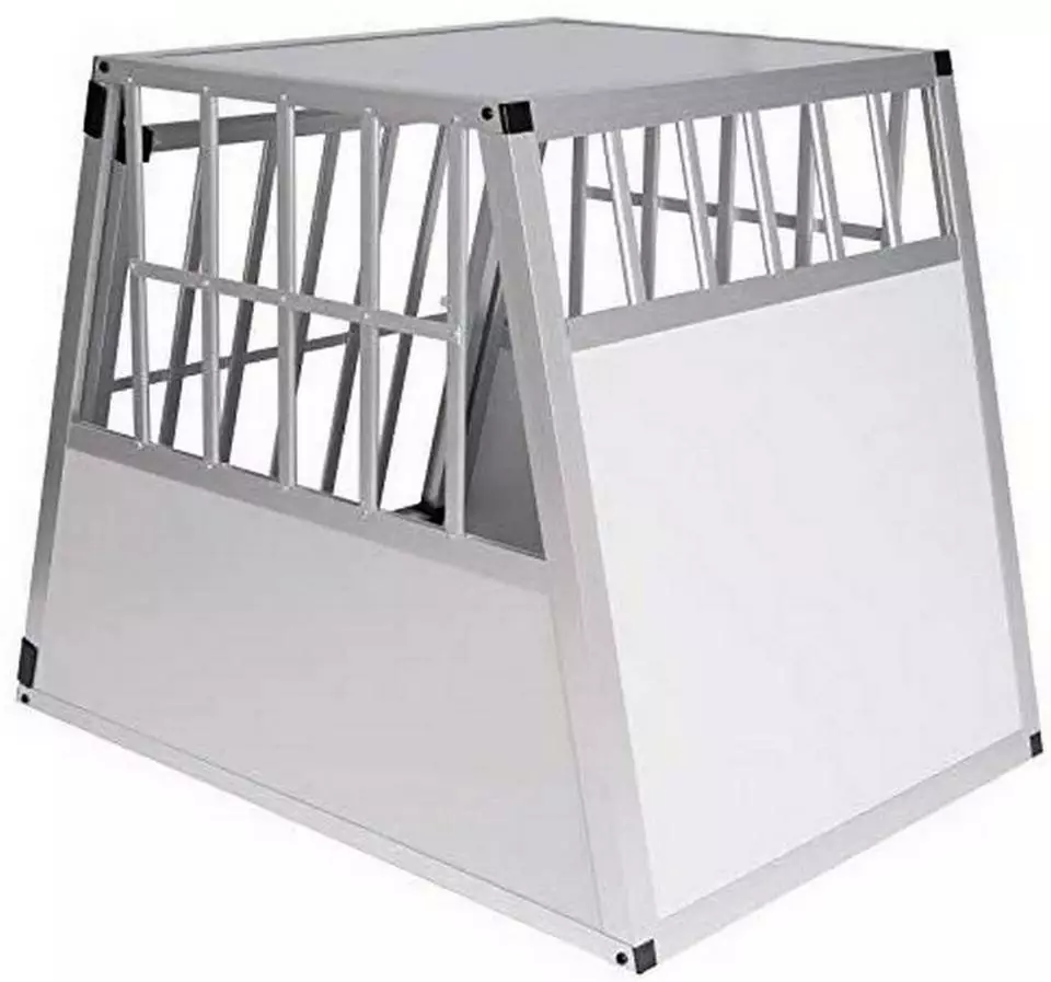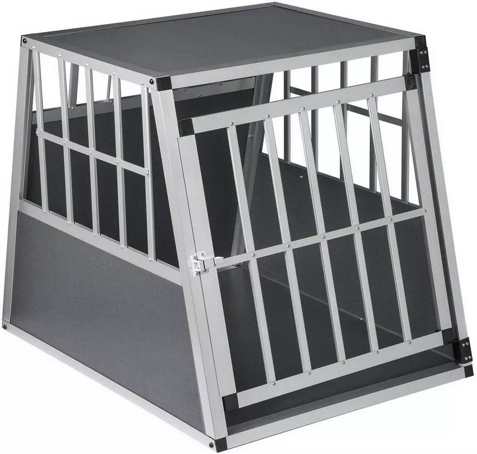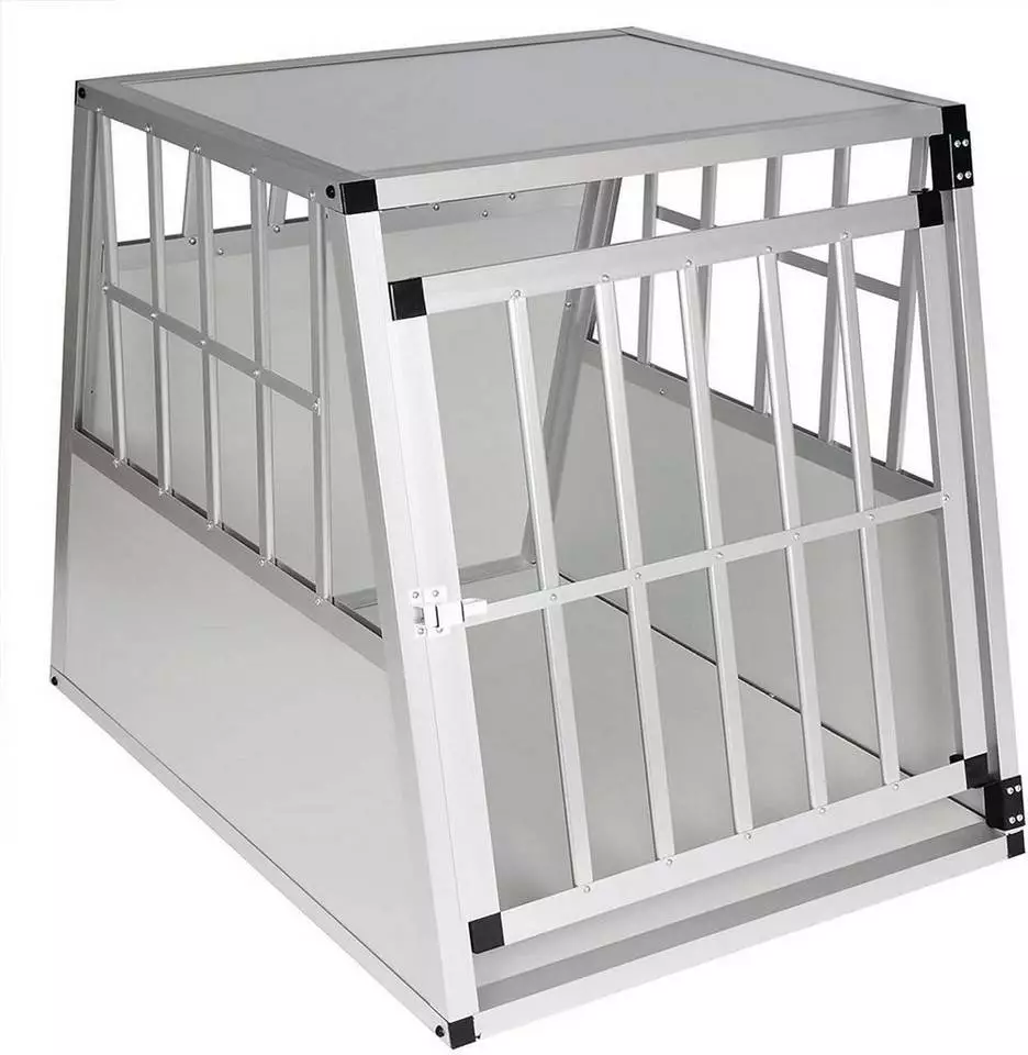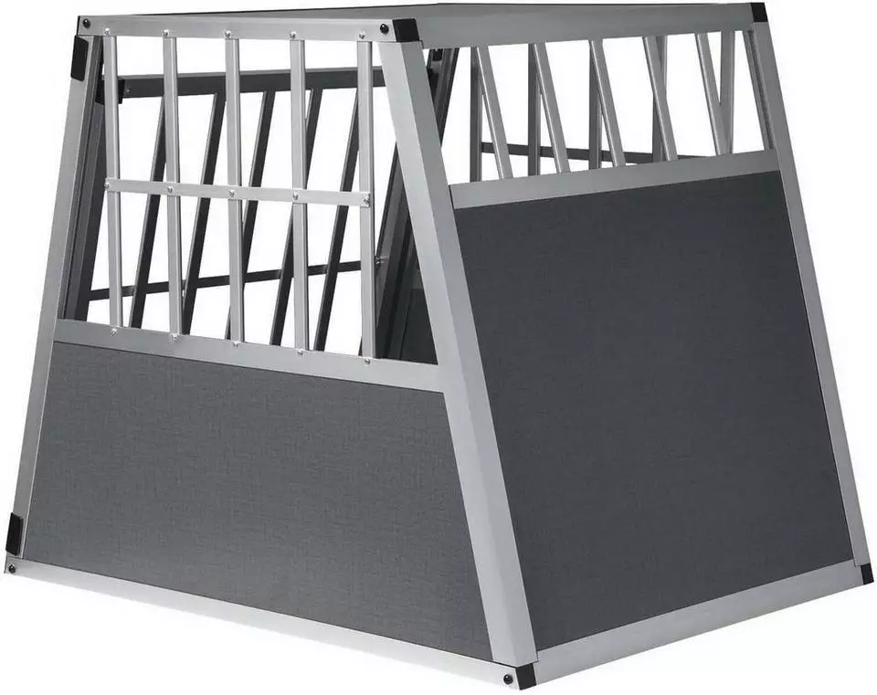 EUGAD Tiertransportbox, Hundetransportbox Alu Hundebox Reisebox Autobox für große Hunde Husky Samojede Weimaraner Border Collie Chow-Chow Shetland Sheepdog 85x65x69 cm Silber Grau
