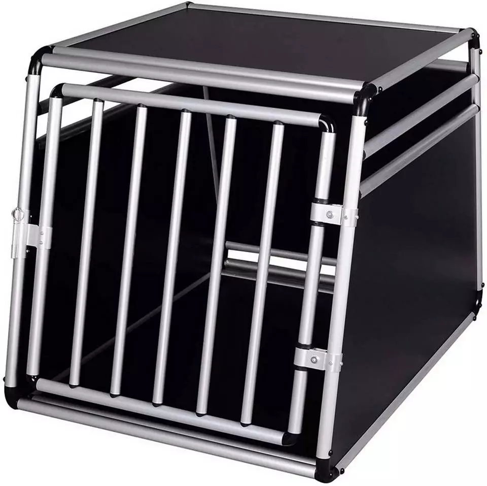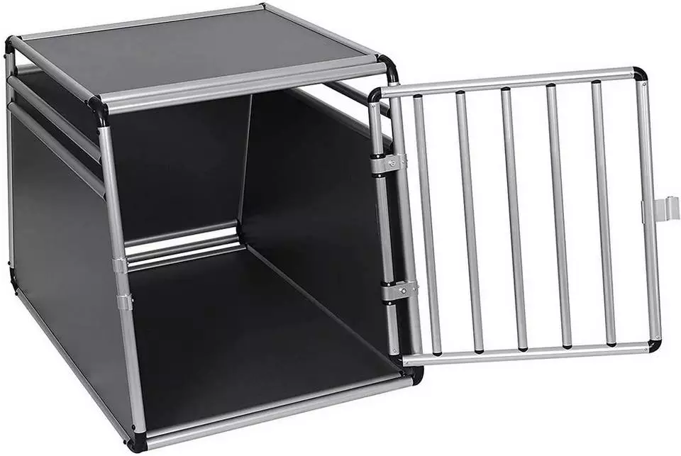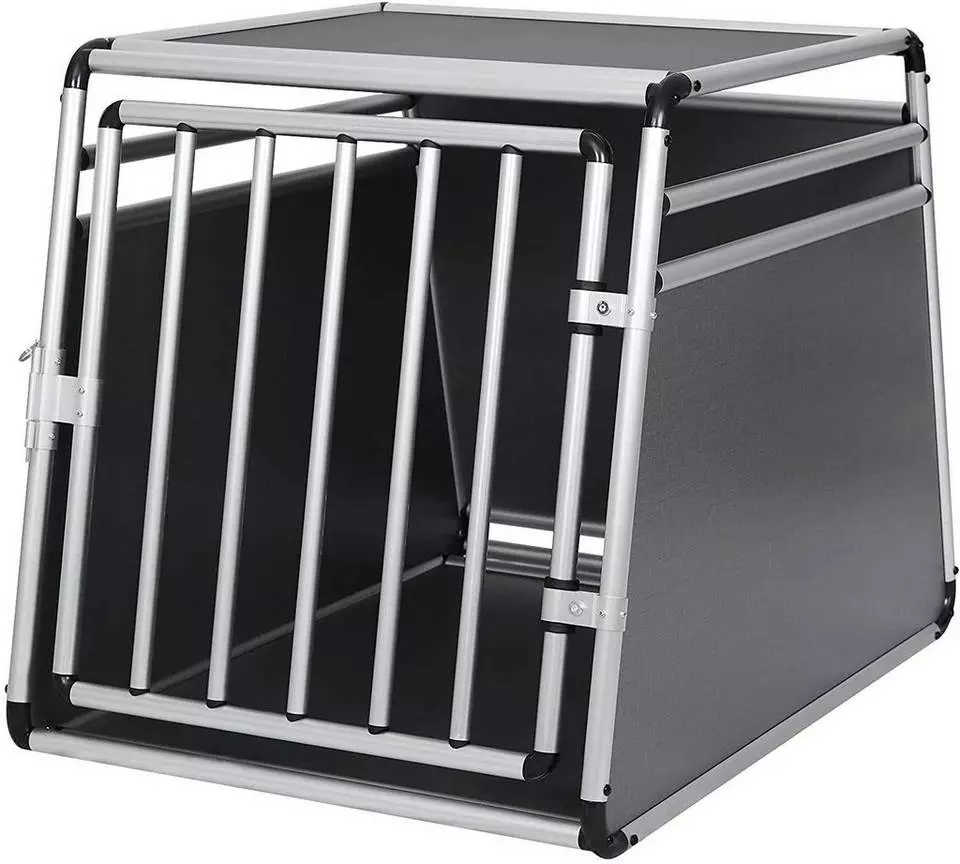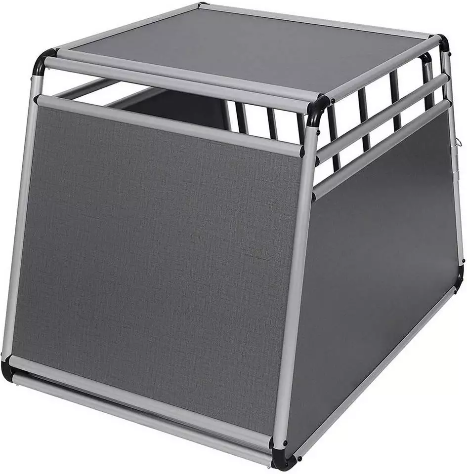 EUGAD Tiertransportbox, Hundetransportbox Alu Hundebox Reisebox Autobox für Husky Samojede Weimaraner Labrador Golden Retriever 90 x 65 x 69 cm XXL Schwarz Grau
