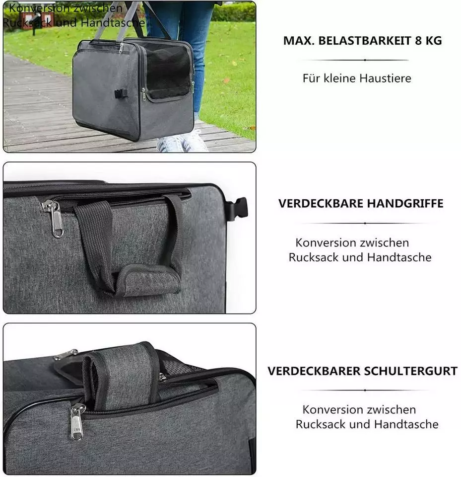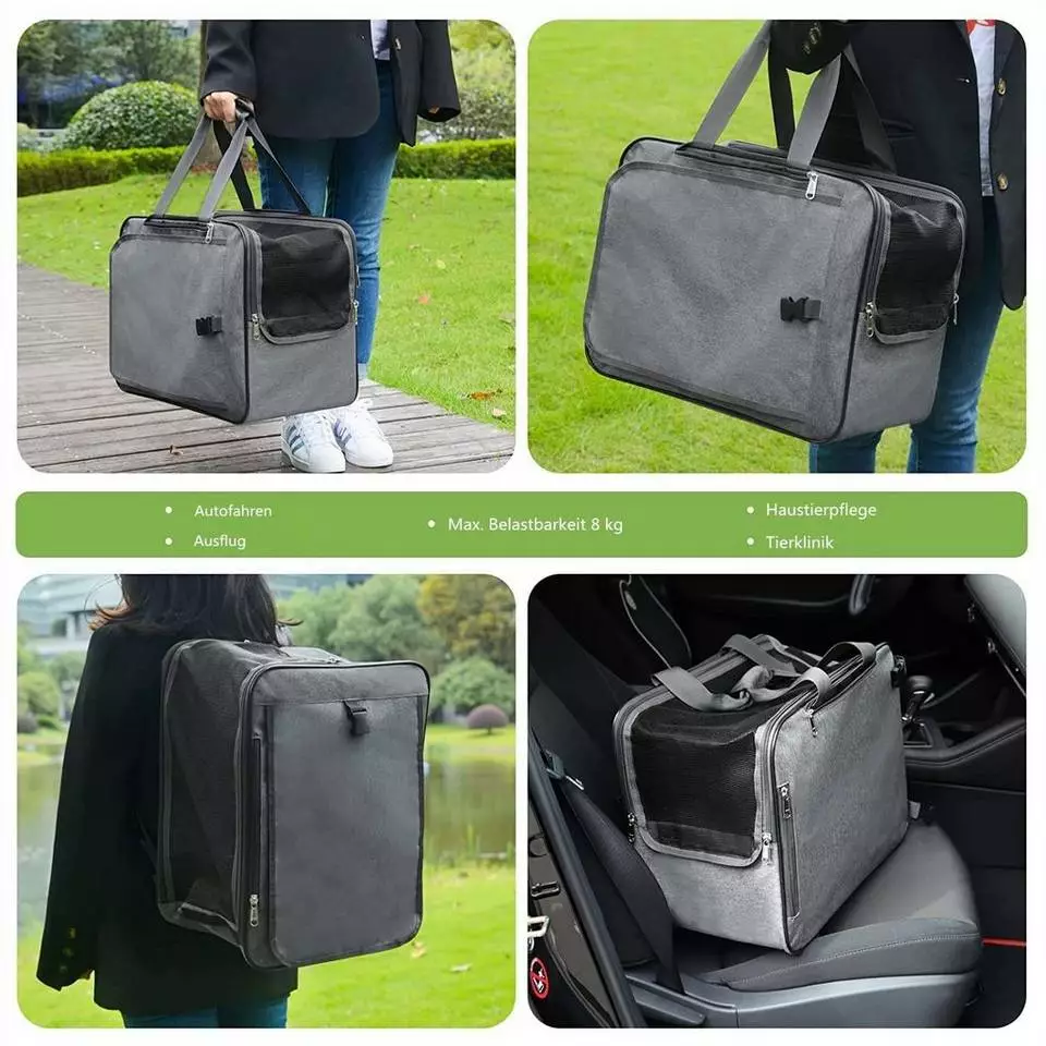 - Die faltbare Tasche kann bei medizinischen Behandlungen, bei der Tierpflege, beim Autofahren, beim Ausgehen und bei Spaziergängen eingesetzt werden.