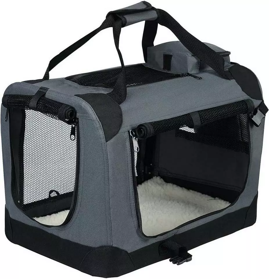 EUGAD Tiertransporttasche, Hundebox faltbar Hundetransportbox Auto Transportbox Reisebox Katzenbox Grau