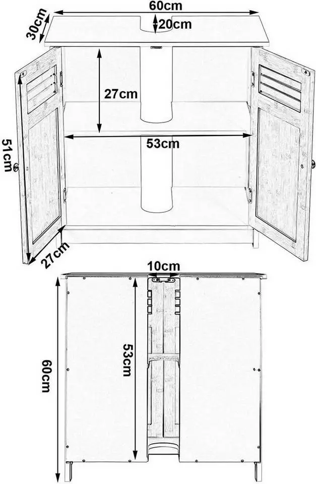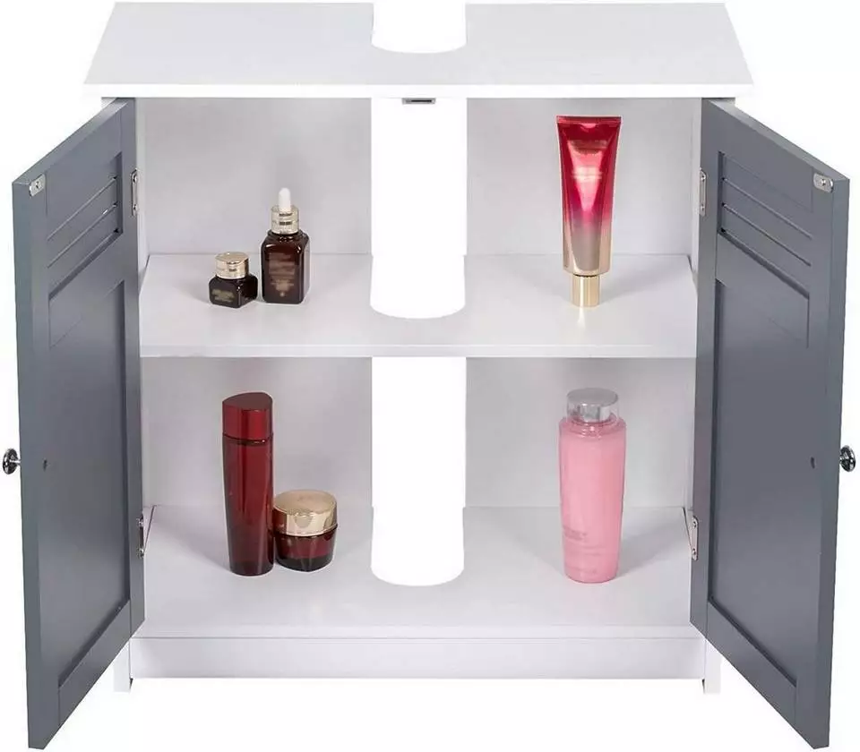 - Vor dem Kauf messen Sie die Größe Ihres Siphons und den zur Verfügung stehenden Platz unter dem Waschbecken aus, um festzustellen, ob dieser Schrank Ihre Badezimmer passt